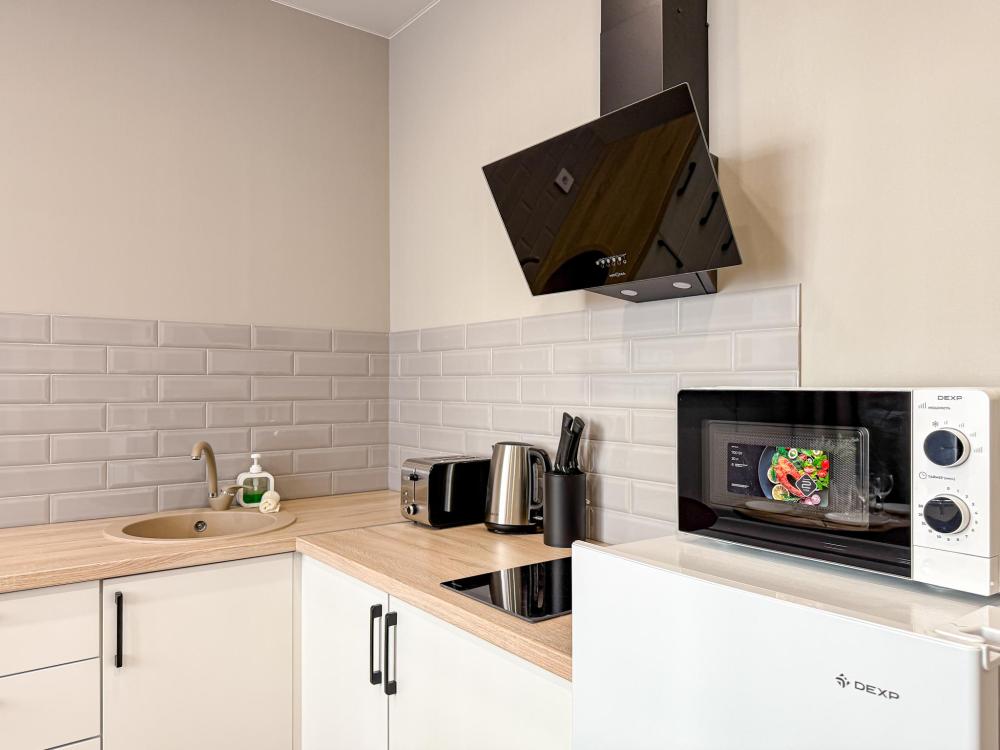 Развитая инфраструктура. И не нужно кружить по району, как кофейная пенка по чашке. Остановка общественного транспорта – шаг влево, шаг вправо – и вы там. 2 км до набережной и пляжа, 200 м до Пятигорского Государственного Института– ТЦ "Наш рынок", Пятерочка, Магнит - в 2 минутах ходьбы. В соседнем доме потрясающая кофейня - Familia cakes and coffee - кофеманы - вам сюда). Квартира оборудована самым необходимым: Удобная кровать — мягче, чем зефир в мокко, Wi-Fi и ТВ — чтобы прокрастинировать с комфортом. Кухня, где вы можете сварить себе капучино (или борщ — это по желанию). Чистота, свежесть и аромат чистых полотенец, как в пятизвёздочном отеле. Комфортное размещение для 4 человек. Дополнительная плата за 3,4 гостя.