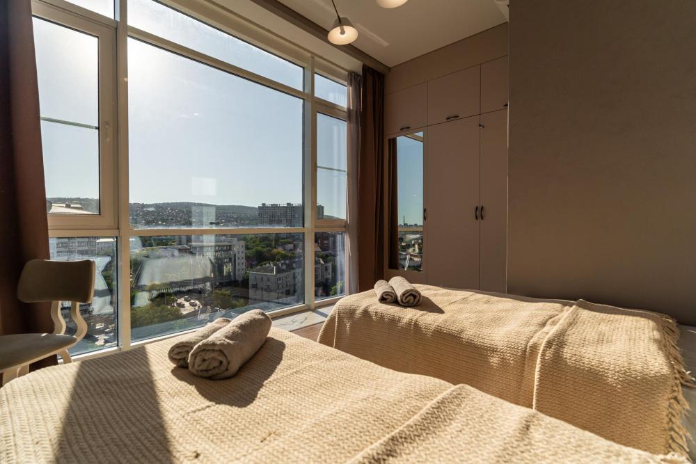 Сдаётся просторная и стильная трехкомнатная квартира в центре Новороссийска — идеальный вариант для комфортного отдыха или деловой поездки! Квартира расположена в современном доме, с панорамным видом на город и море с уютного застеклённого балкона. Здесь с комфортом разместятся до 5 гостей — две полноценные спальни с двуспальными кроватями и гостиная с раскладным диваном. ПОЧЕМУ ЭТО ИДЕАЛЬНЫЙ ВЫБОР? ✨ Просторные спальни с комфортными кроватями для двоих и уютный диван в гостиной ✨ Современная техника: индукционная плита, посудомоечная машина, стиральная машина, микроволновка, тостер и многое другое ✨ Три сплит-системы — климат-контроль на кухне, в гостиной и спальнях ✨ Два смарт-телевизора для полного релакса ✨ Застеклённый балкон с видом на море — идеальное место для утреннего кофе ✨ Полный комплект постельного белья, полотенец и бытовых принадлежностей ПРЕИМУЩЕСТВА РАЙОНА: ✨Центральный район с развитой инфраструктурой ✨ Парк Фрунзе всего в 2 минутах ходьбы ✨До городского пляжа — всего 10 минут пешком ✨ Бесплатная и удобная парковка рядом с домом ✨ Огороженная детская площадка напротив дома В КВАРТИРЕ ВАС ЖДУТ: • Полноценная кухня с современной техникой и посудой для приготовления любых блюд • Уютные спальни и гостиная с современным интерьером • Большое количество полотенец и постельных принадлежностей для всех гостей • Удобные кресла из ротанга и столик на балконе для отдыха с видом на море • Пандус и лифт для удобства с коляской или багажом ПРЕИМУЩЕСТВА РАБОТЫ С НАМИ: •Бесконтактное и круглосуточное заселение — удобно и безопасно •Поддержка менеджеров с 9:00 до 22:00 — всегда готовы помочь •Время заезда с 14:00, время выезда до 12:00 •Базовый залог 5000 рублей, возвращается в день выезда •Верификация гостей по паспорту для безопасности БЕЗОПАСНОСТЬ И ПРАВИЛА: •Запрещены вечеринки и курение — только спокойный отдых •Заселение с 21 года, с детьми — приветствуется •В квартире запрещены животные