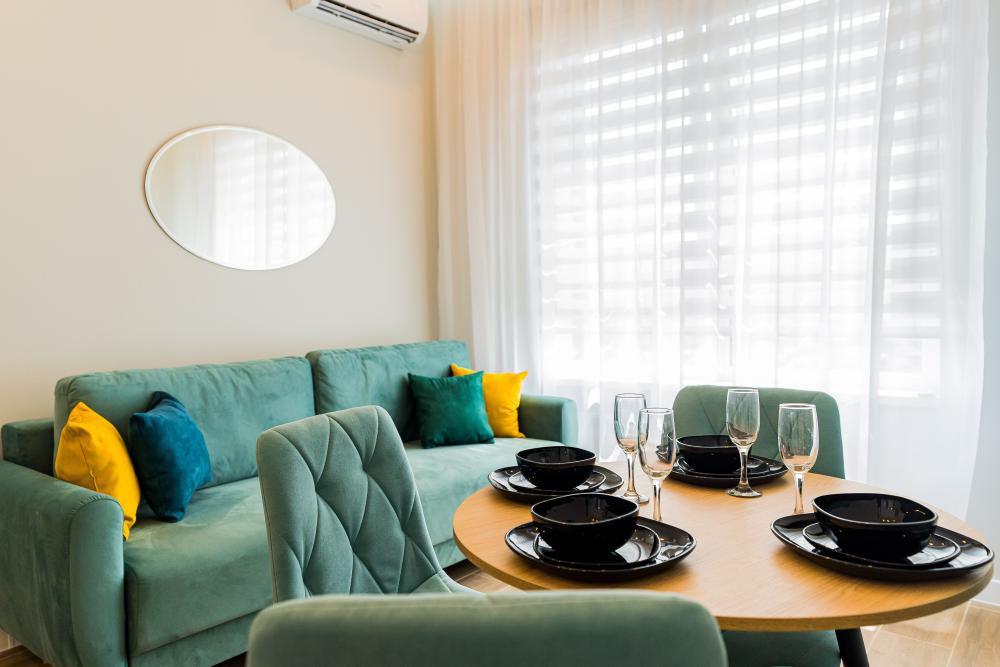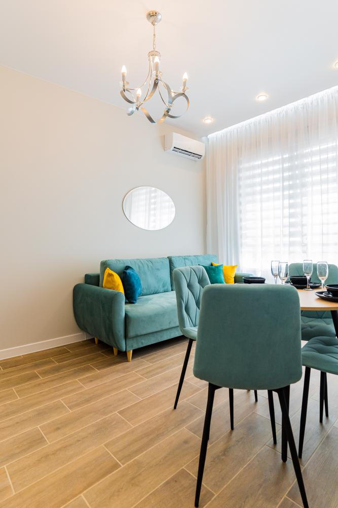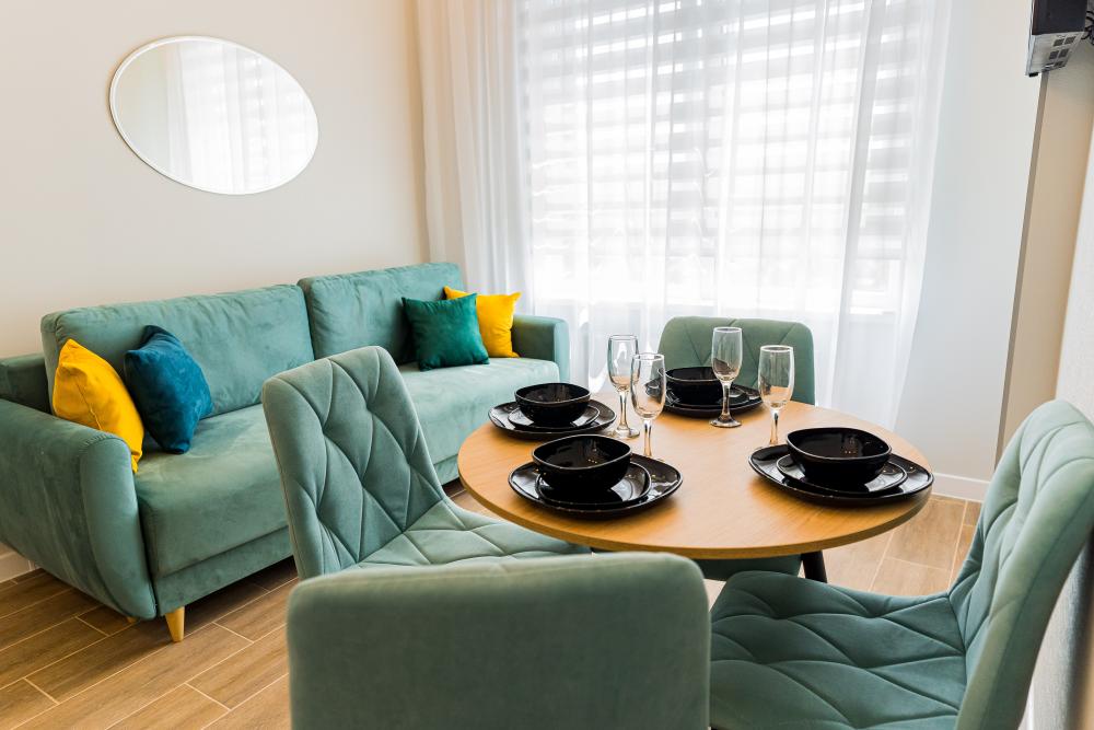 Апартаменты рассчитаны на комфортное проживание гостей, имеется вся необходимая мебель и бытовая техника для проживания. Апартаменты предназначены для комфортного проживания гостей и оборудованы всей необходимой мебелью и бытовой техникой. Внутри апартаментов гостям доступен бесплатный высокоскоростной WI-FI, чистое постельное белье, посуда, столовые приборы, а также все необходимое для приготовления еды. Кроме того, в пешей доступности от апартаментов находятся различные кафе и рестораны, а также автобусные остановки, которые находятся в 5 минутах ходьбы. Таким образом, гости могут насладиться комфортным проживанием и удобствами, которые предоставляются в апартаментах, а также легко добраться до местных достопримечательностей и других интересных мест.
