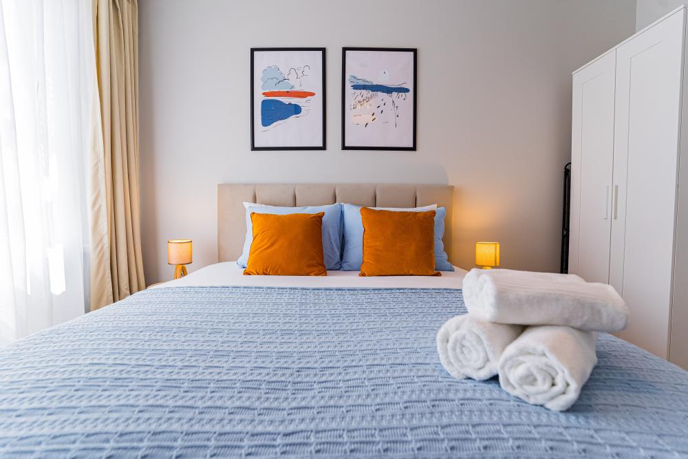 Апартаменты рассчитаны на комфортное проживание гостей, имеется вся необходимая мебель и бытовая техника для проживания. Апартаменты предназначены для комфортного проживания гостей и оборудованы всей необходимой мебелью и бытовой техникой. Внутри апартаментов гостям доступен бесплатный высокоскоростной WI-FI, чистое постельное белье, посуда, столовые приборы, а также все необходимое для приготовления еды. Кроме того, в пешей доступности от апартаментов находятся различные кафе и рестораны, а также автобусные остановки, которые находятся в 5 минутах ходьбы. Таким образом, гости могут насладиться комфортным проживанием и удобствами, которые предоставляются в апартаментах, а также легко добраться до местных достопримечательностей и других интересных мест.