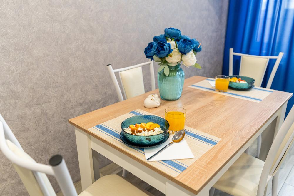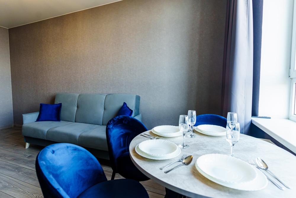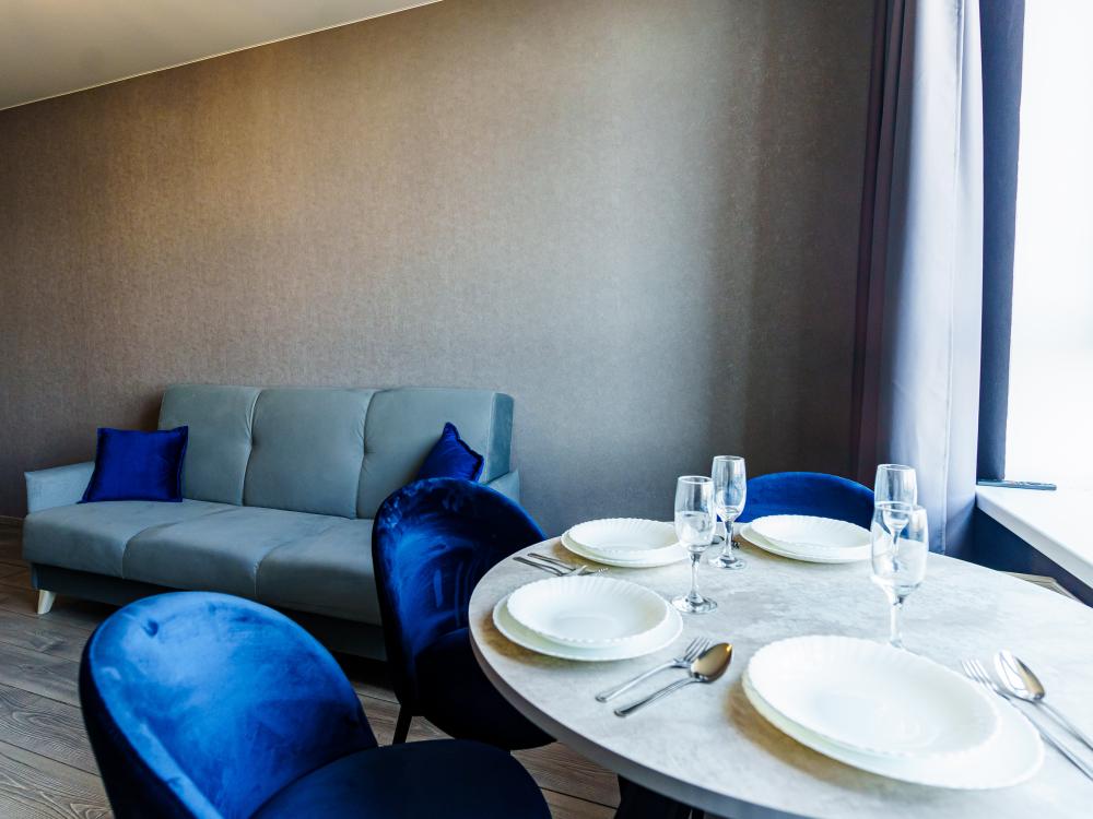 Апартаменты рассчитаны на комфортное проживание гостей, имеется вся необходимая мебель и бытовая техника для проживания. Апартаменты предназначены для комфортного проживания гостей и оборудованы всей необходимой мебелью и бытовой техникой. Внутри апартаментов гостям доступен бесплатный высокоскоростной WI-FI, чистое постельное белье, посуда, столовые приборы, а также все необходимое для приготовления еды. Кроме того, в пешей доступности от апартаментов находятся различные кафе и рестораны, а также автобусные остановки, которые находятся в 5 минутах ходьбы. Таким образом, гости могут насладиться комфортным проживанием и удобствами, которые предоставляются в апартаментах, а также легко добраться до местных достопримечательностей и других интересных мест.