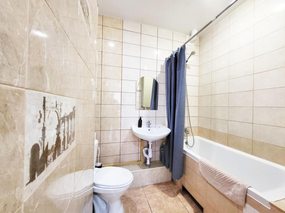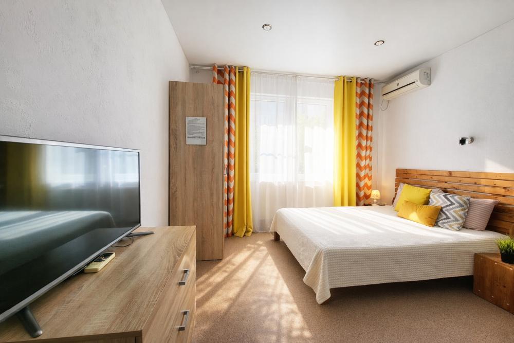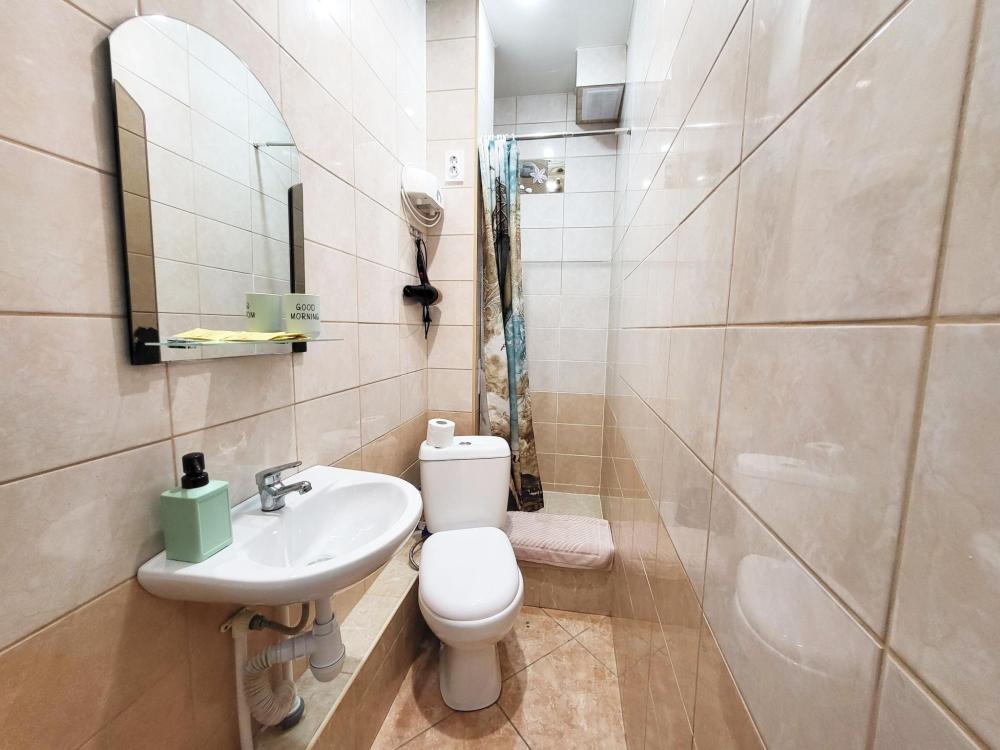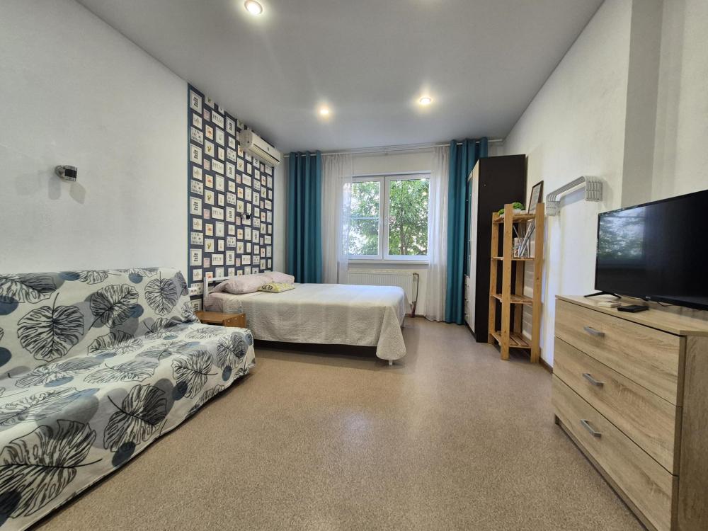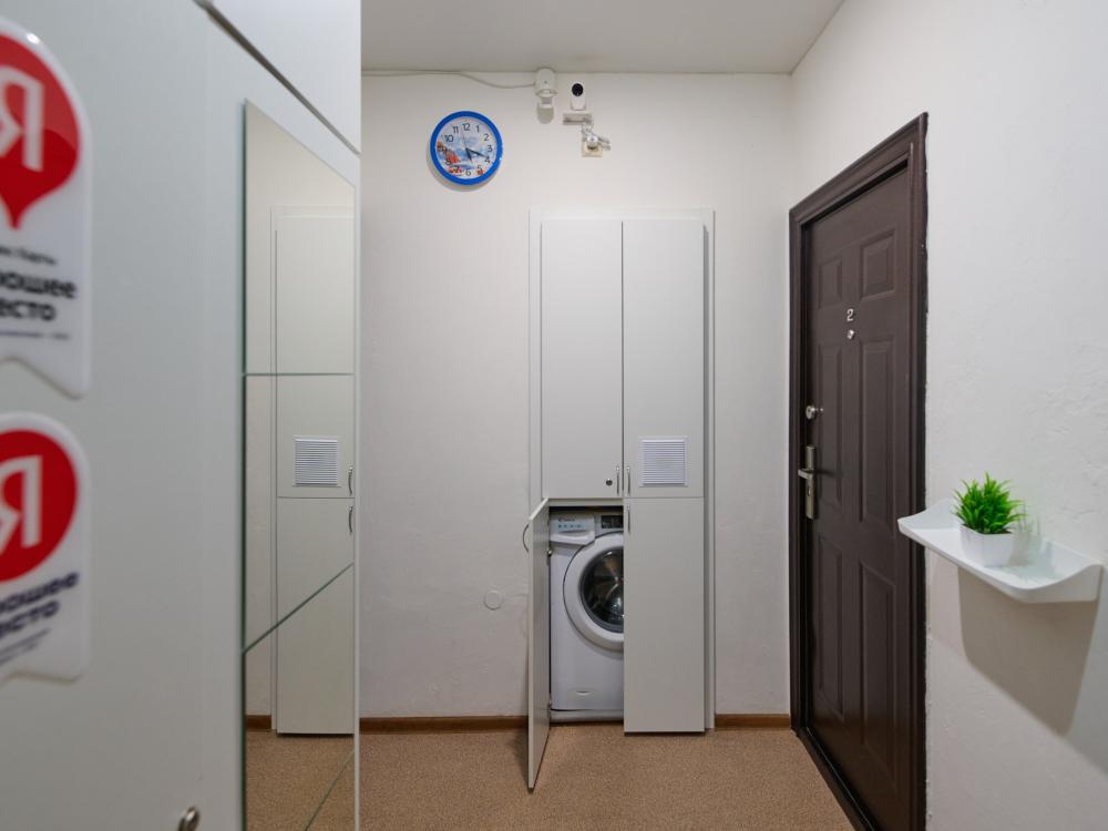 В апартаментах для удобства гостей есть: стиральная машина, интернет Wi-Fi, телевизор, кондиционер, холодильник, кухонная плита, СВЧ-печь, утюг с гладильной доской, ванные принадлежности, набор посуды и столовых приборов по количеству персон. В студии 2 спальных места: двуспальная кровать, возможно дополнительное место раскладная кровать. Апартаменты расположены на 1 этаже.