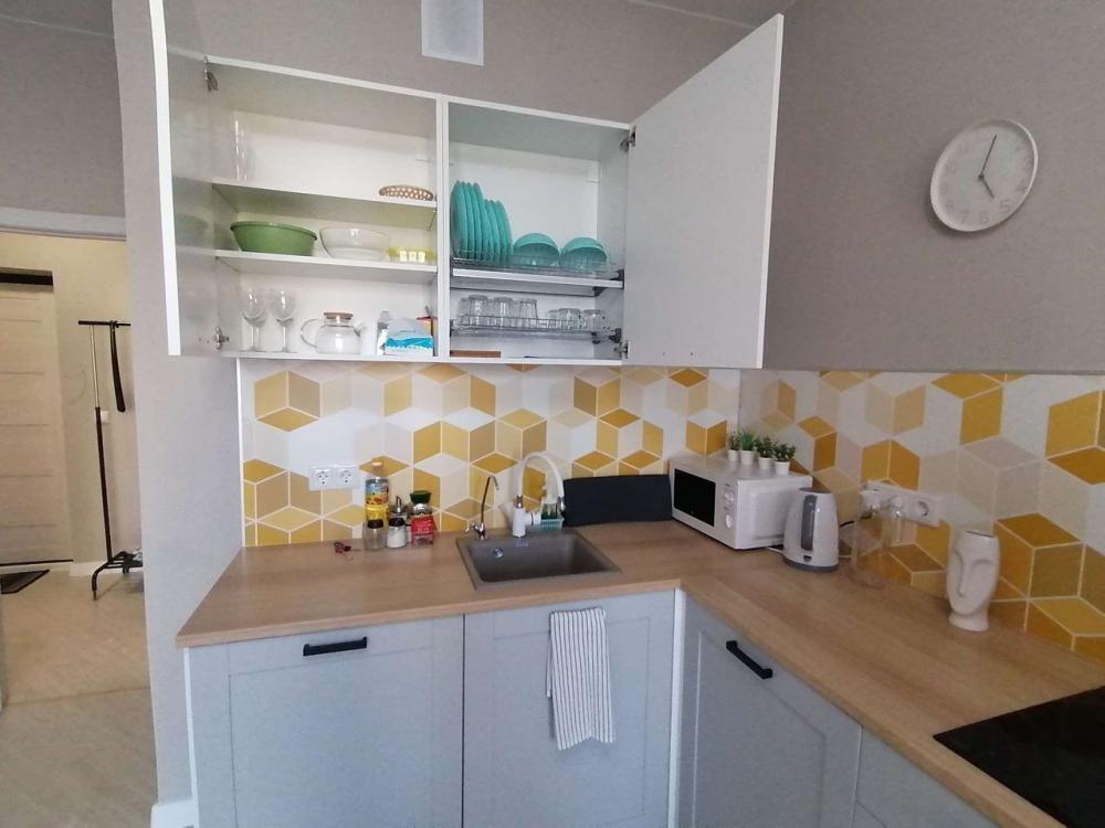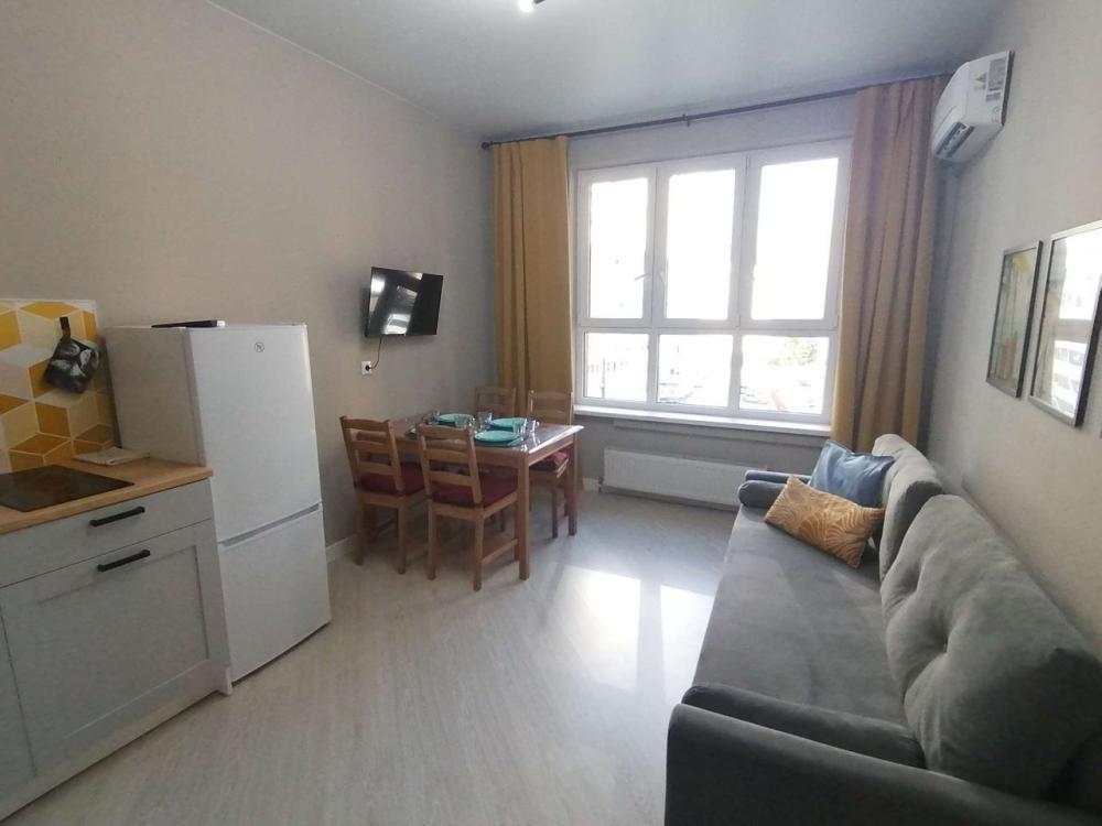 Квартира с кухней-гостиной и отдельной спальней с вместимостью до 4 гостей в новом ЖК Бизнес - класса. В квартире есть все необходимое для комфортного проживания до 4х гостей. Оснащённая кухня (посуда, микроволновая печь, холодильник, электрический чайник, электрическая плита,встроенный фильтр для воды, посудомоечная машина). В спальне 2х спальная кровать(160см) с ортопедическим матрасом, зеркало, гардеробная, гладильная доска, утюг, пылесос. Второе спальное место - раскладывающийся диван (140см) для двоих расположен на кухне-гостиной. Так же имеется смарт телевидение Wink, высокоскоростной интернет. Санузел укомплектован стиральной машиной, средствами гигиены и комплектом полотенец на каждого гостя. В спальне и кухне - гостиной установлены сплит - системы. Предоставляется приветственный набор продуктов-чай, кофе, сахар, соль, перец, растительное масло. В ванной комнате и на кухне имеется гель для стирки вещей(или порошок), средство для мытья посуды, шампунь, гель для душа, кондиционер для волос, и ещё много разных мелочей, чтобы проживание было комфортным). В доме стоят накопительные баки на случаи отключения водоснабжения!) на случай отключения горячей воды установлен накопительный водонагреватель на 80л.