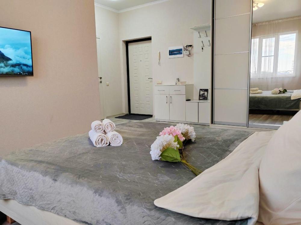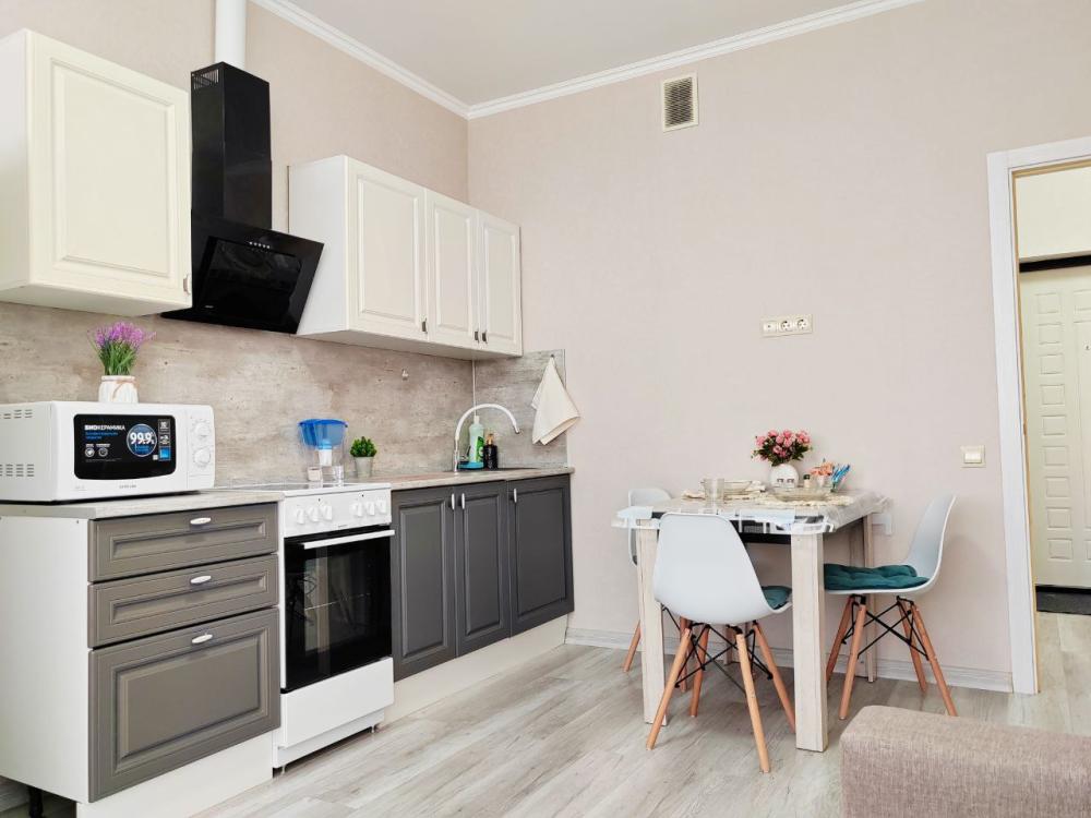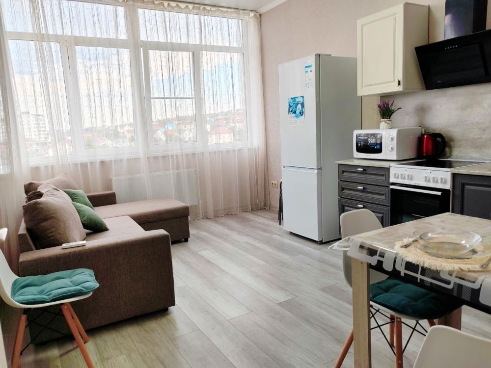 Просторная однокомнатная квартира, 42м2 с новым ремонтом и новой мебелью. В квартире двухспальная кровать и угловой диван. Что дает разместиться семье с ребенком. В квартире есть Всё для уюта и комфортного проживания: ЖК телевизор, SMART TV. Триколор, полотенца, Постельные принадлежности-всегда чистые, стиральная машина, порошок для стирки, микроволновая печь, утюг, Фен, Чайник, бесплатный Wi-Fi, на кухне все необходимые столовые приборы, посуда, кастрюля, сковорода. Удобное расположение, в максимальной близи находятся: ТЦ «Красная площадь», ТЦ «Бон Пассаж», Воинская часть,Пятерочка, Фикс Прайс, Кафе, Алкотека, Фитнес-зал, OZON и Wildberries, Остановка общecтвенoгo транспорта, с развязкой в любую точку города, Автовокзал, Детский развлекательный цeнтp для детей, Сaлон красоты и все что требуется для вашего отдыха. Море находится в 3 км от местоположения квартиры.