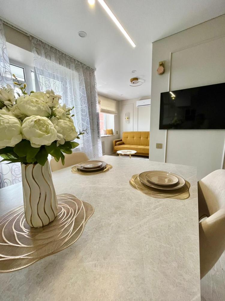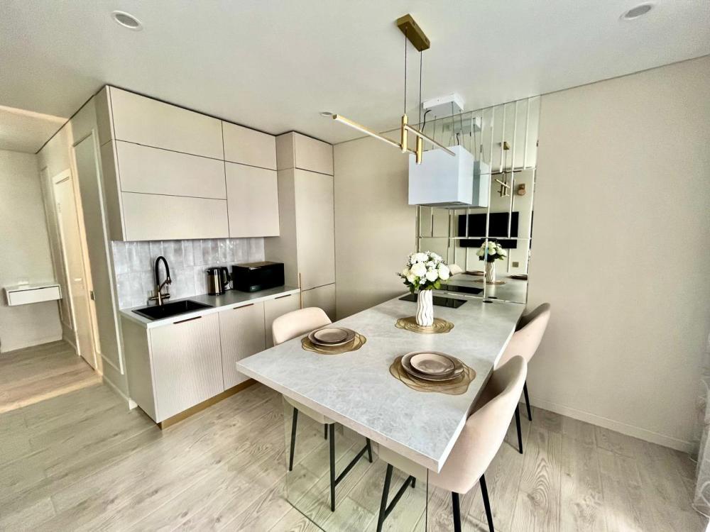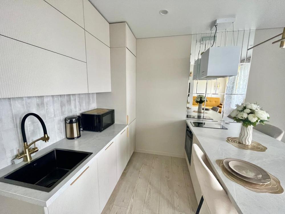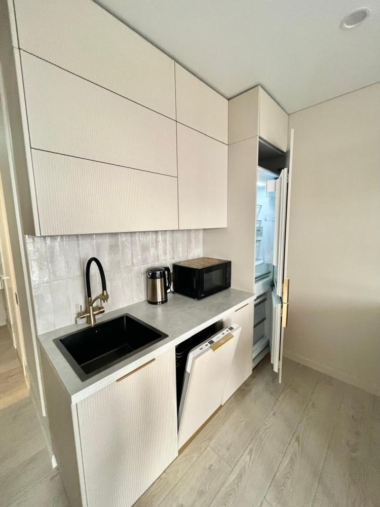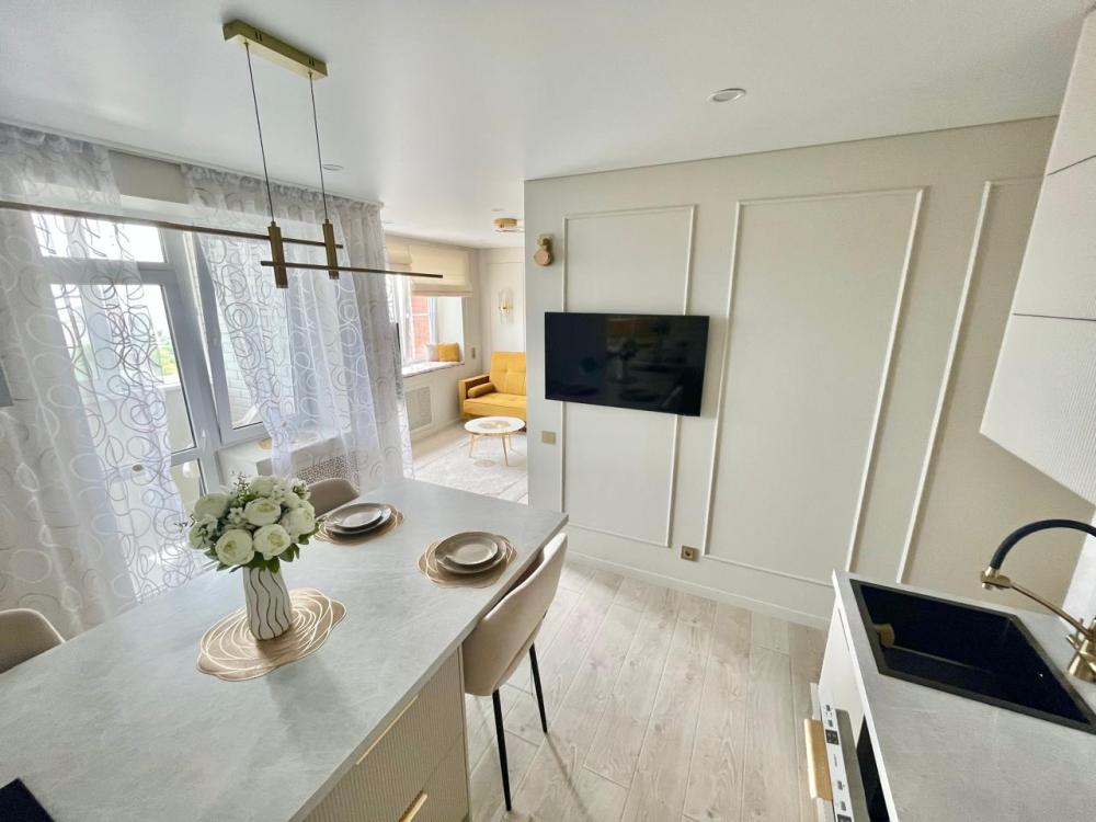 В квартире имеется всё необходимое для комфортного проживания: кровать : 160×200, диван-кровать: очень удобно раскладывается и получается полноценная двухспальная кровать. Кухня укомплектована всей необходимой бытовой техникой: большой встроенный холодильник, встроенный духовой шкаф, индукционная плита на 2 конфорки, микроволновая печь, посудомоечная машина, чайник, посуда, фужеры и т.д. В квартире имеется Wi-Fi. Два телевизора Smart. Система умный дом. Для комфорта есть : фен, утюг, гладильная доска, а также полотенца для душа, для лица, полотенца для пляжа, жидкое мыло, гель для душа, шампунь.