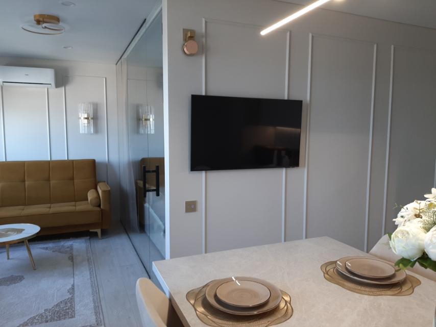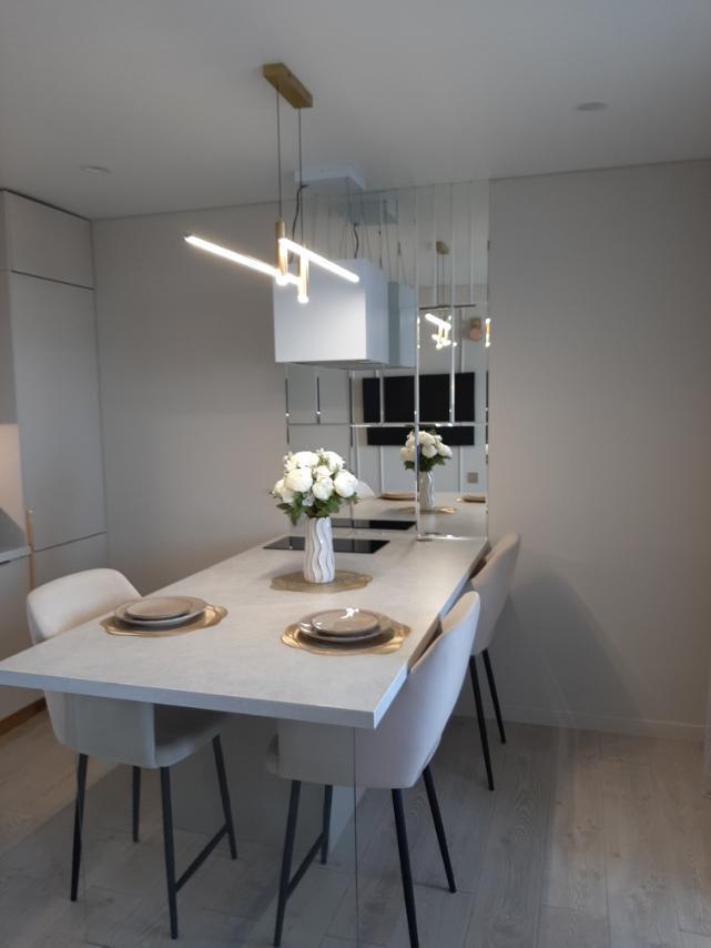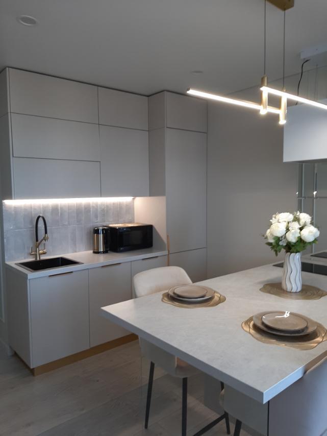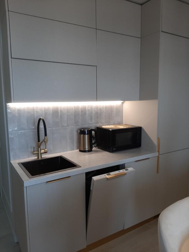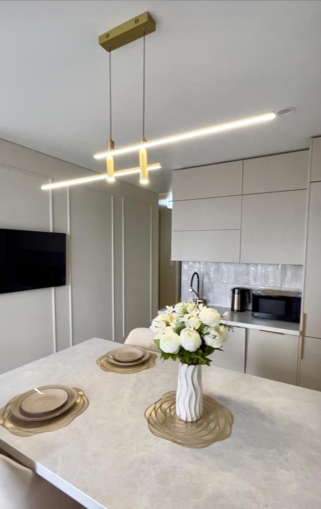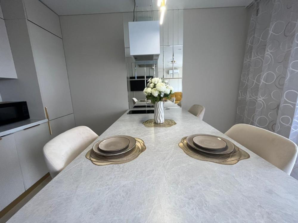 В квартире имеется всё необходимое для комфортного проживания: кровать : 160×200, диван-кровать: очень удобно раскладывается и получается полноценная двухспальная кровать. Кухня укомплектована всей необходимой бытовой техникой: большой встроенный холодильник, встроенный духовой шкаф, индукционная плита на 2 конфорки, микроволновая печь, посудомоечная машина, чайник, посуда, фужеры и т.д. В квартире имеется Wi-Fi. Два телевизора Smart. Система умный дом. Для комфорта есть : фен, утюг, гладильная доска, а также полотенца для душа, для лица, полотенца для пляжа, жидкое мыло, гель для душа, шампунь.