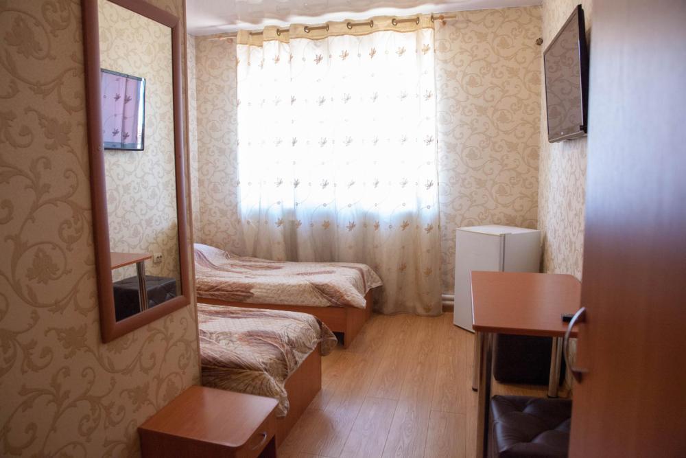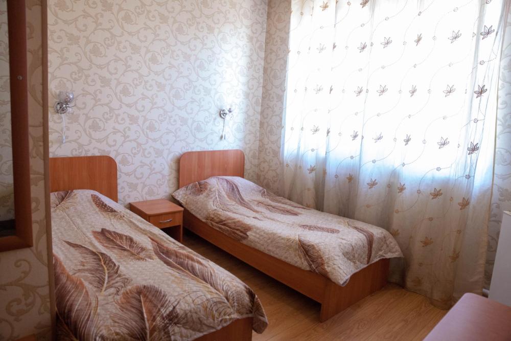 Номер эконом с двумя односпальными кроватями.Удобства в номере.