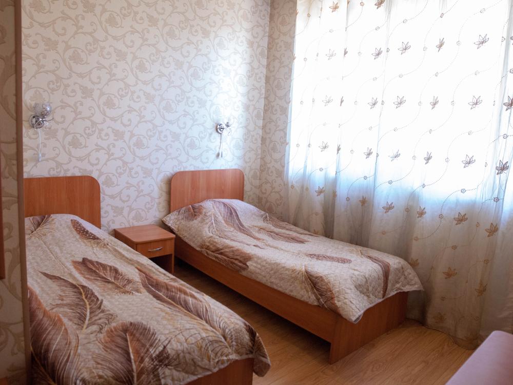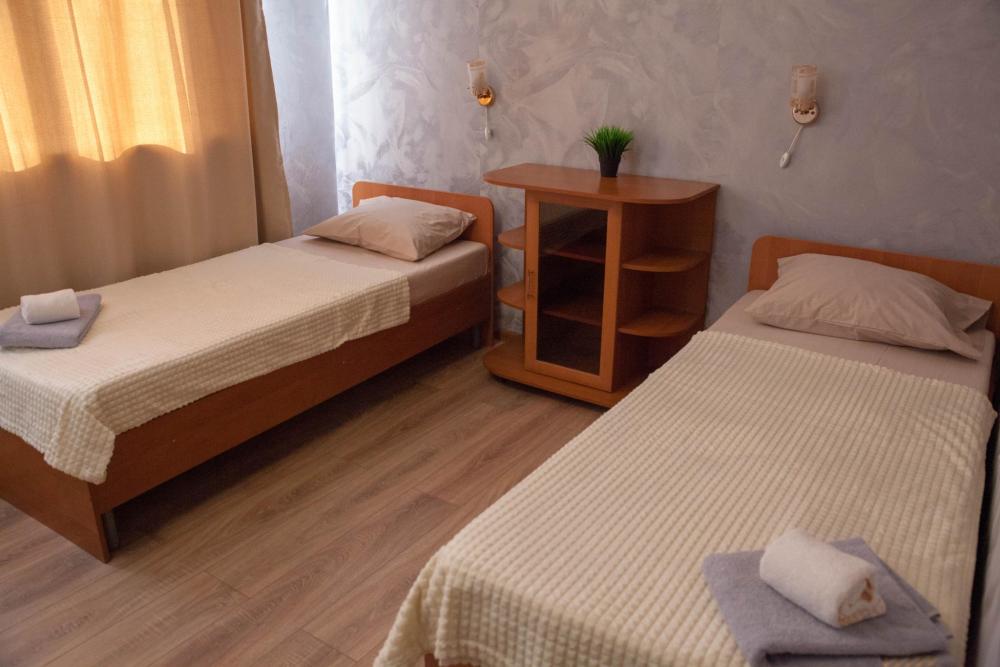 Номер эконом с двумя односпальными кроватями.Удобства в номере.