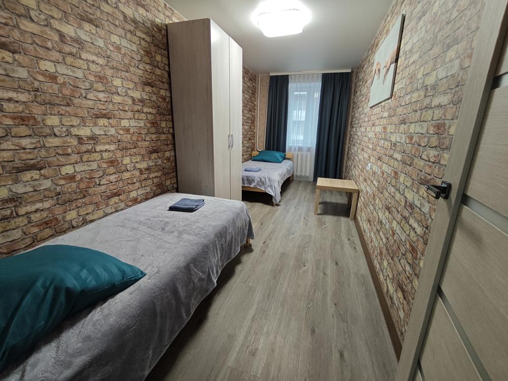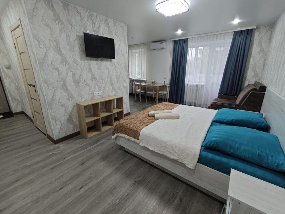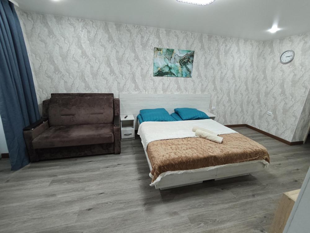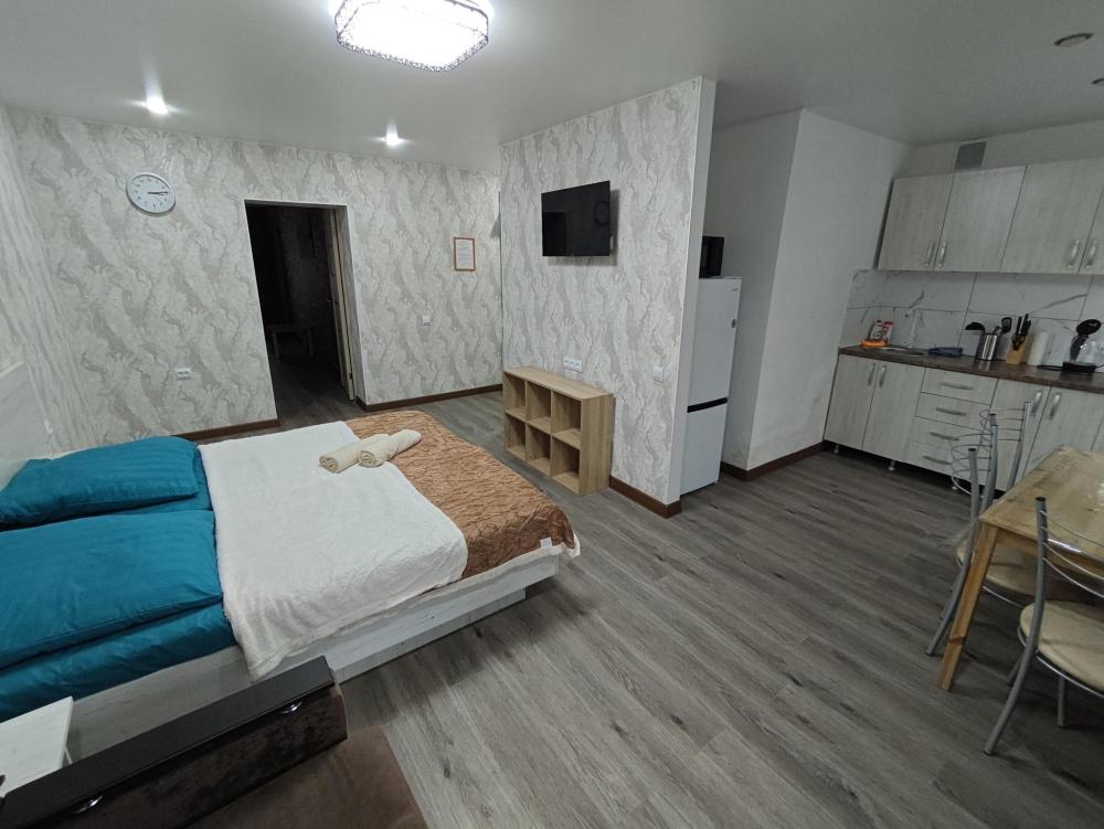 Большая студия с отдельной изолированной комнатой, 5 отдельных спальных места; Бесплатная парковка во дворе с камерами наблюдения. ******** ✅ Бесконтактное заселение! Заезд возможен в любое время суток, нужно только оплатить бронь до 22:00 час и получить у администратора код к боксу с ключами. ✅ У нас всегда чисто, уборка и дезинфекция квартир проводится профессиональными горничными ЕЖЕДНЕВНО! ✅ Свежее постельное белье и предметы личной гигиены всем гостям ГАРАНТИРУЮТСЯ! ✅ Горячая вода (душ) есть всегда! ✅ Чай, кофе, сахар, для гостей, входят в стоимость проживания! ✅ Командировочным предоставляем все необходимые отчётные документы. ********** Интерьер: -двуспальная евро-кровать 160х200см, с ортопедическим матрасом, -двуспальный раскладной диван, -2 отдельные кровати -Смарт ТВ (скучать не придется), -бесплатный Wi-Fi , -сплит-система, -стиральная машина-автомат -холодильник с морозильной камерой, -газовая панель, -микроволновая печь, -полный набор посуды, чайник, фен, утюг, гладильная доска, сушка и все другие бытовые мелочи. Двор оборудован детской площадкой, имеется автостоянка.❗️❗️ На фото именно эта квартира! Для шумных вечеринок, мероприятий, не сдаем! Расчетный час при заселении на сутки - 12.00 час. ****** ДЕПОЗИТ: При заселении необходимо внести СТРАХОВОЙ ДЕПОЗИТ в размере 3000руб. Мы дорожим качеством своих квартир. Депозит - неотъемлемая часть бронирования. После проверки состояния объекта размещения на предмет соблюдения правил дома и сохранности имущества, депозит будет полностью возвращен Вам на карту. В случае проживания менее 3-х суток, с депозита дополнительно взимается сбор за уборку в размере 500 руб.