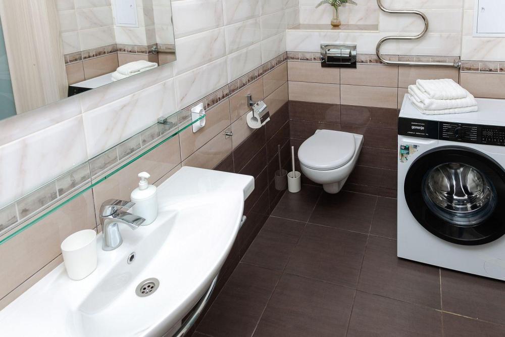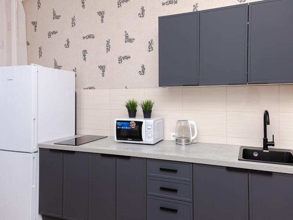 В квартире есть все необходимое для комфортного проживания: стиральная машинка, двуспальная кровать, двуспальный диван, холодильник, микроволновка, плита с духовкой, чайник, необходимая посуда для приготовления пищи, утюг, фен, гладильная доска, сушилка для белья. Кабельное телевидение, высокоскоростной безлимитный Wi-Fi В доме видеонаблюдение, консьерж, большая новая детская площадка.