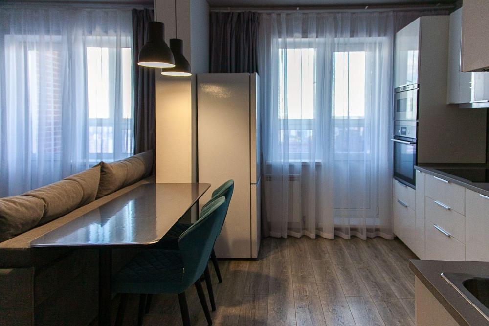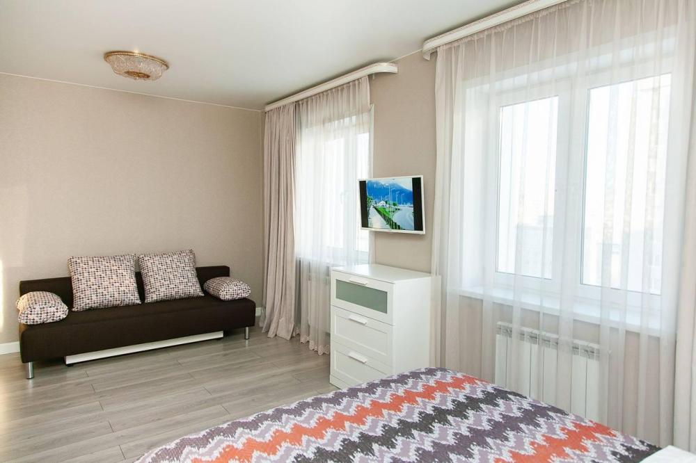 Красивая Евродвушка в новом доме на 15 этаже в 25-ти этажном доме в центре В доме видеонаблюдение, консьерж. Имеется парковка во дворе и шлагбаум. В апартаментах есть все необходимое для комфортного проживания: стиральная машинка, двуспальная кровать и двуспальный диван, кухонная зона, плазменный телевизор в каждой комнате, холодильник, плита, чайник, необходимая посуда для приготовления пищи, микроволновка, утюг, гладильная доска, сушилка для белья, фен. Кабельное телевидение, безлимитный Wi-Fi, чистое постельное белье, полотенца, средства гигиены. Дополнительно оплачивается 500₽ постельные белье на дополнительное спальное место (диван), заселение гостей через офис на Крылова,34.