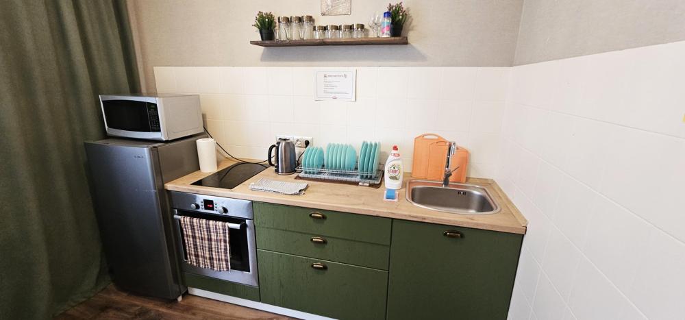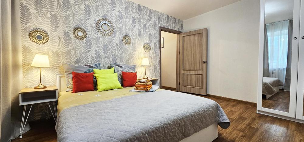 Уютны апартаменты с видом на город. В апартаментах имеется все необходимое для комфортного проживания: двуспальная кровать, два дивана, кухня с обеденной зоной, санузел с ванной и стиральной машиной, Wi-Fi, чай, кофе, шоколад, конфеты, индивидуальные средства гигиены, чистый комплект постельного белья и полотенец, 2 телевизора с кабельным ТВ на 150 каналов, вся необходимая бытовая техника.