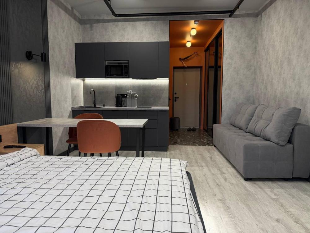 В квартире есть все необходимое для проживания, уюта и удобства. Удобная парящая кровать с ортопедическим матрасом. Техника (плита, чайник, микроволновка, смарт TV, фен, утюг, стиральная машина). Безлимитный и быстрый Wi-Fi. Все принадлежности для гигиены (полотенца, зубные щетки и паста, ватные диски, гель для душа, шампунь и т.д.). Всё, чтобы постирать и привести в порядок свои вещи (порошок, утюг, сушилка и гладильная доска)
