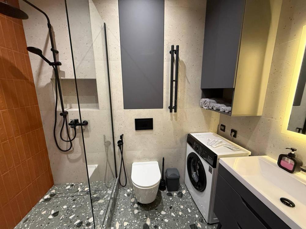 В квартире есть все необходимое для проживания, уюта и удобства. Удобная парящая кровать с ортопедическим матрасом. Техника (плита, чайник, микроволновка, смарт TV, фен, утюг, стиральная машина). Безлимитный и быстрый Wi-Fi. Все принадлежности для гигиены (полотенца, зубные щетки и паста, ватные диски, гель для душа, шампунь и т.д.). Всё, чтобы постирать и привести в порядок свои вещи (порошок, утюг, сушилка и гладильная доска)