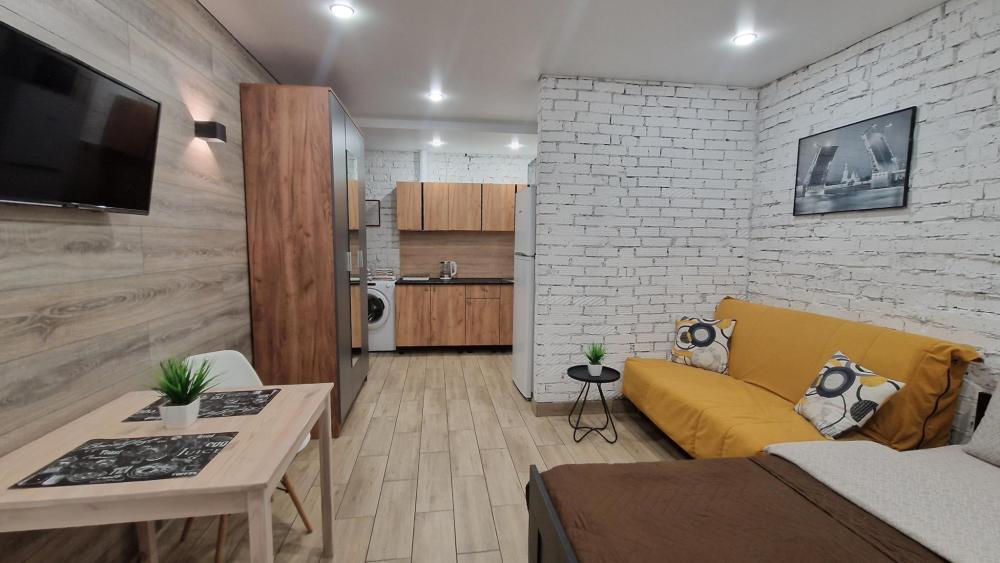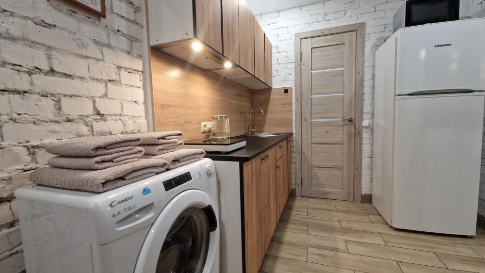 В квартире предусмотрено все необходимое для комфортного проживания: двуспальная кровать, раскладной диван, кухонный стол, ЖК телевизор с подпиской на домашний кинотеатр KION. На кухне современная бытовая техника: холодильник, СВЧ-печь, плита, чайник, стиральная машина автомат. Душевая комната. Высокоскоростной бесплатный Wi-Fi. Чай, кофе, сахар, перец, соль, растительное масло. Средства гигиены, посуда, кухонные приборы и принадлежности для приготовления пищи. Фен, утюг, гладильная доска, сушилка для белья. Всегда свежее постельное белье и полотенце.
