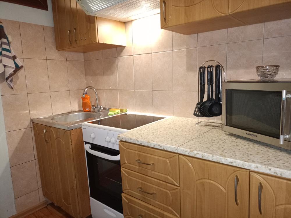 Два раскладных дивана, шкаф для хранения вещей, телевизор. Полностью оборудованная кухня с техникой: холодильник, плита, микроволновая печь, чайник, посуда, обеденная зона. Ванная комната, стиральная машина, гигиенические принадлежности. Предоставляется постельное белье и полотенца.