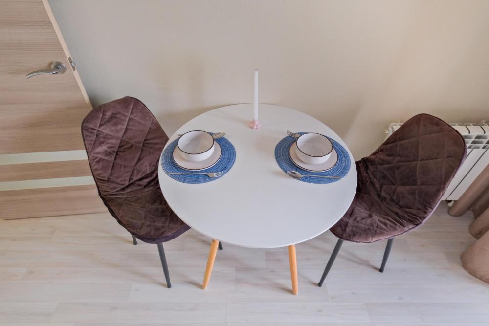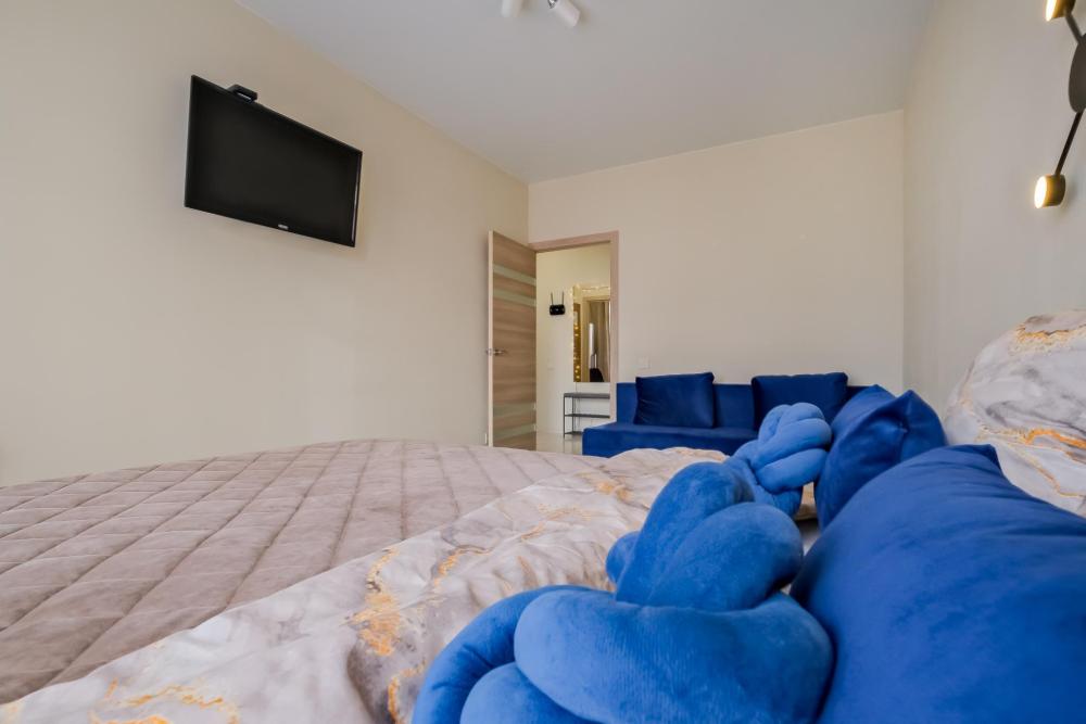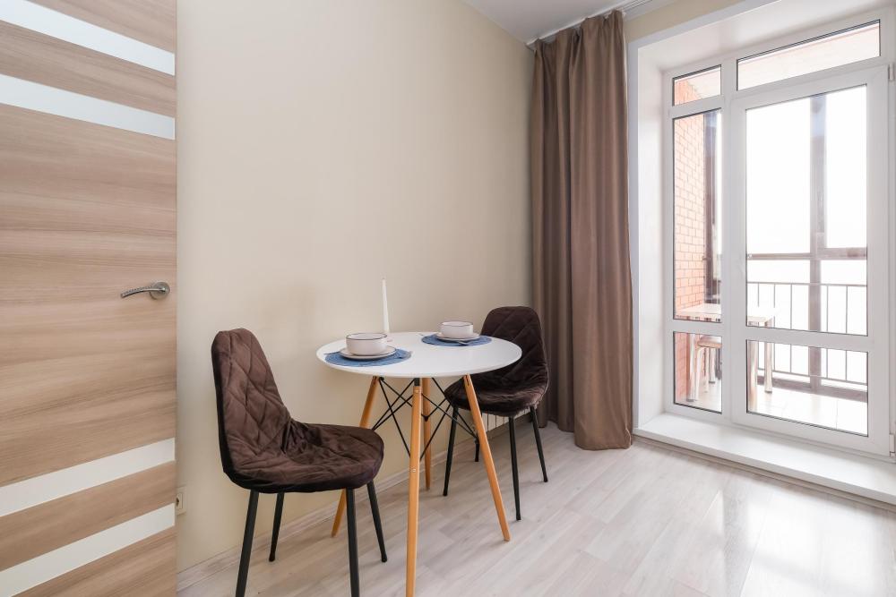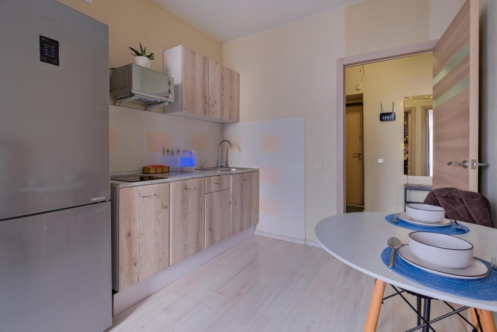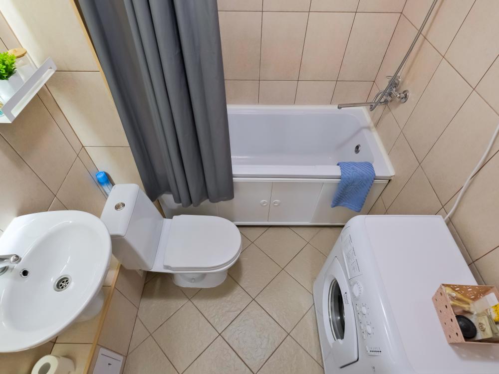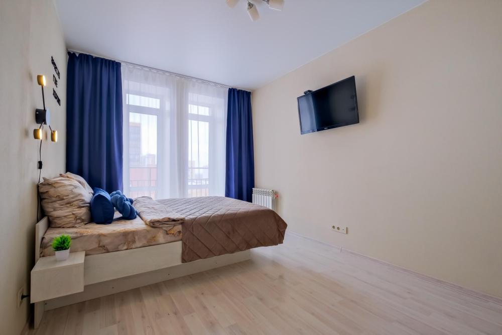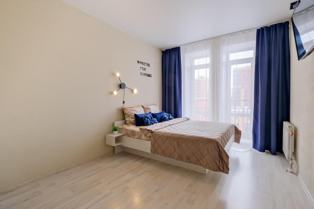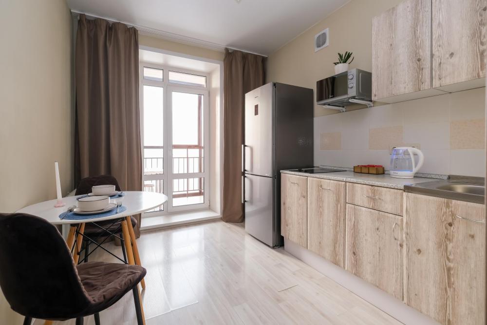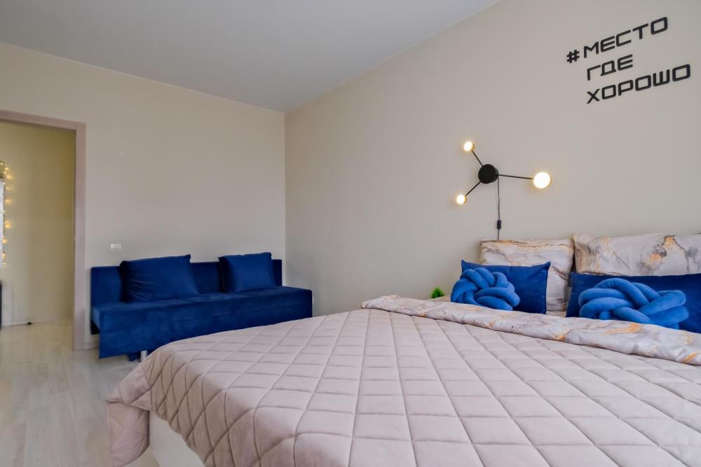 Однокомнатные апартаменты подойдут для комфортного размещения до 4 человек. Спальные места: двуспальная кровать с ортопедическим матрасом 160*200, раскладной диван, раскладное кресло в качестве дополнительного места. Для комфортного проживания доступны: WI-FI и ТV, стиральная машина, фен, утюг, гладильная доска и сушилка для белья. На кухне: плита, холодильник, СВЧ-печь, чайник, посуда и кухонные принадлежности. Совмещенный санузел с ванной. Постельное белье и полотенца предоставляются.
