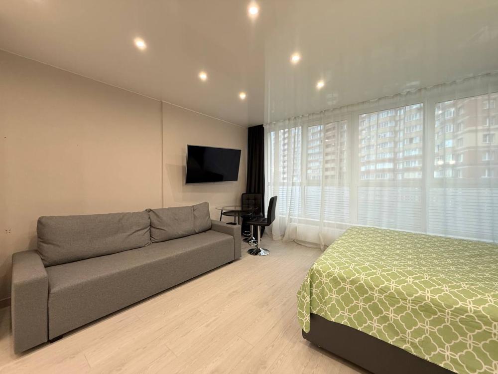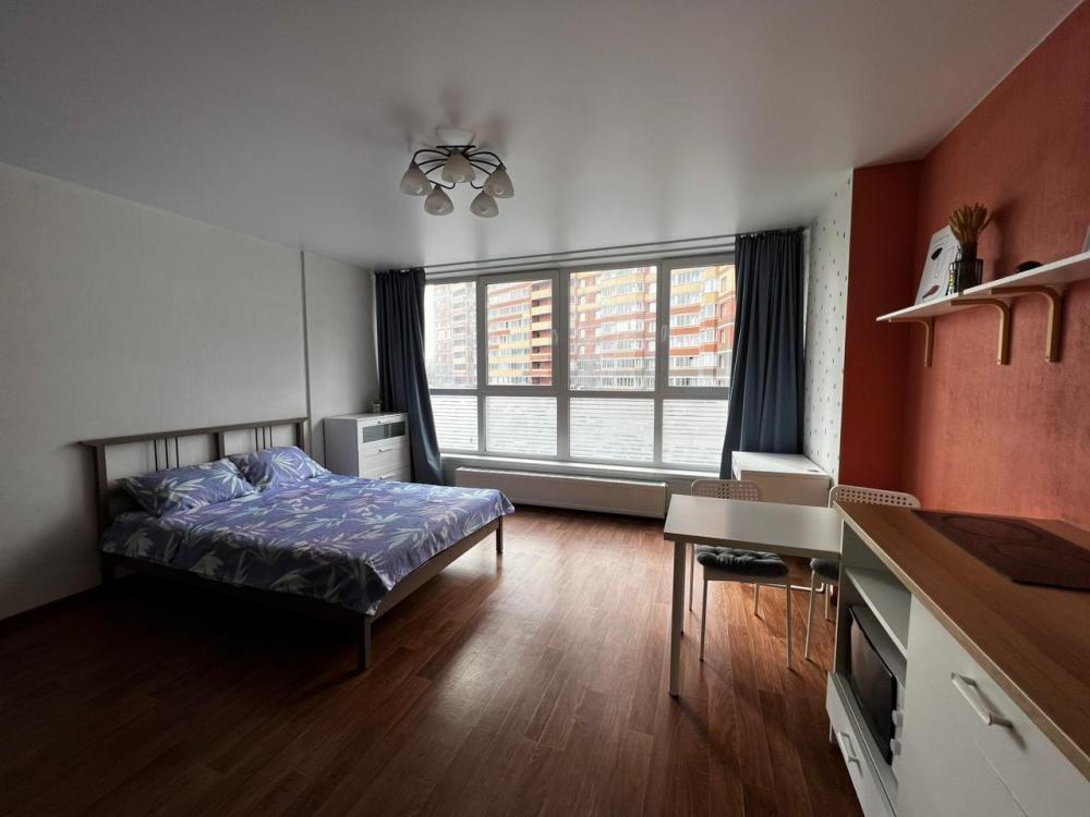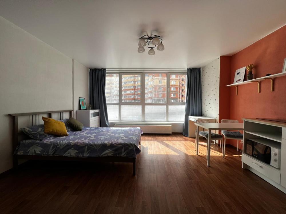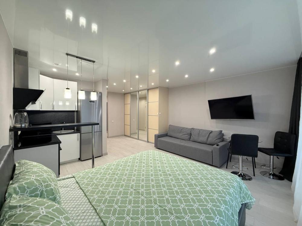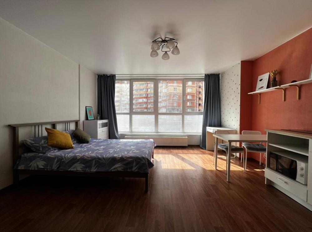 Уютные апартаменты студия для 4 гостей. Спальные места: двуспальная кровать, раскладной диван. В квартире предоставляются постельные принадлежности и полотенца, шампунь и гель для душа, набор посуды и кухонной утвари для готовки, фен, утюг с гладильной доской, стиральная машина, холодильник, плита, микроволновая печь, чайник, телевизор и бесплатный Wi-Fi.
