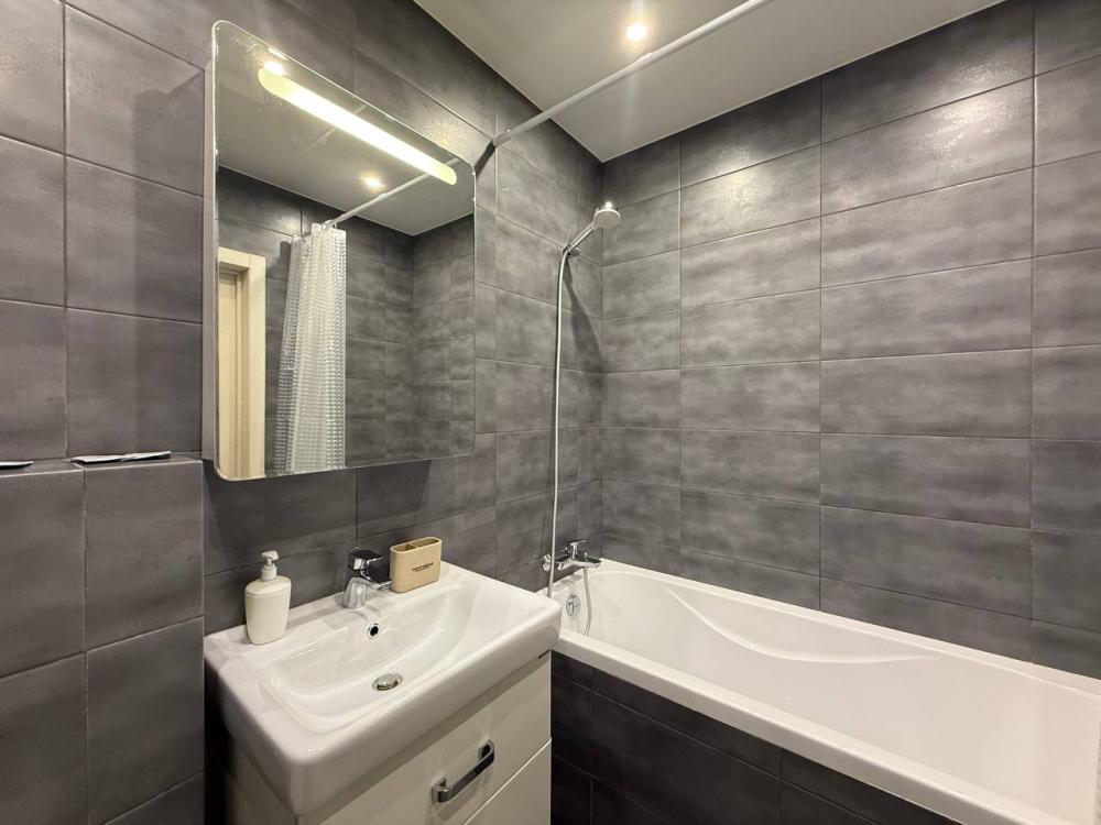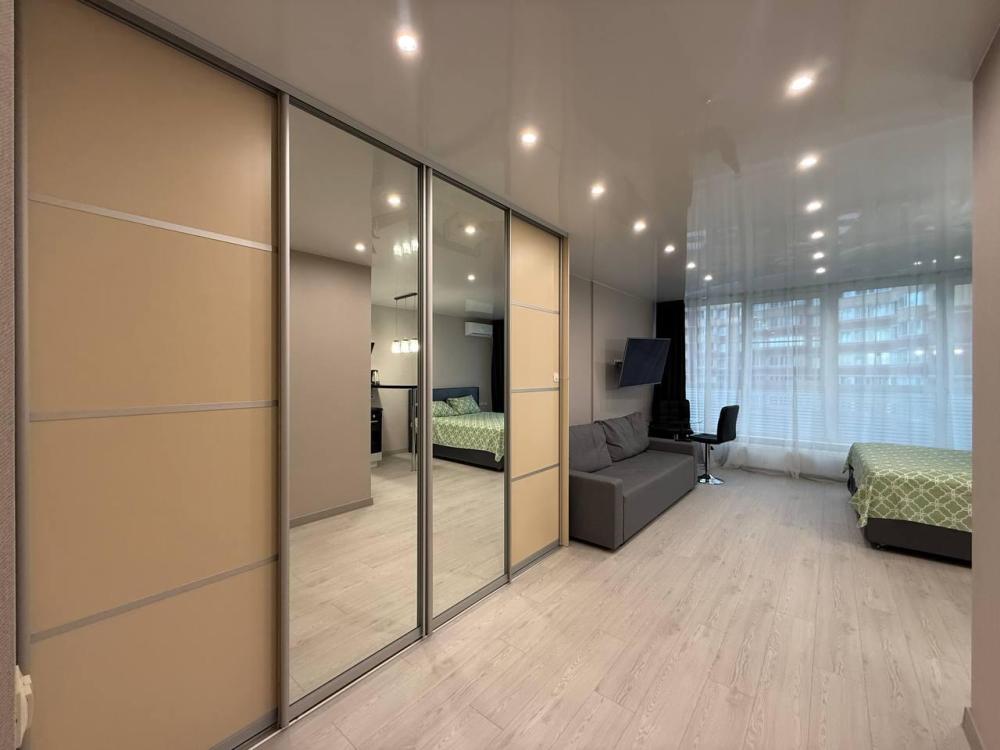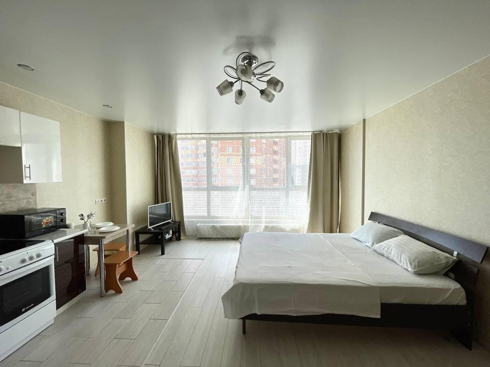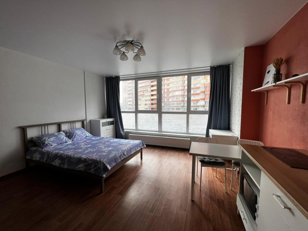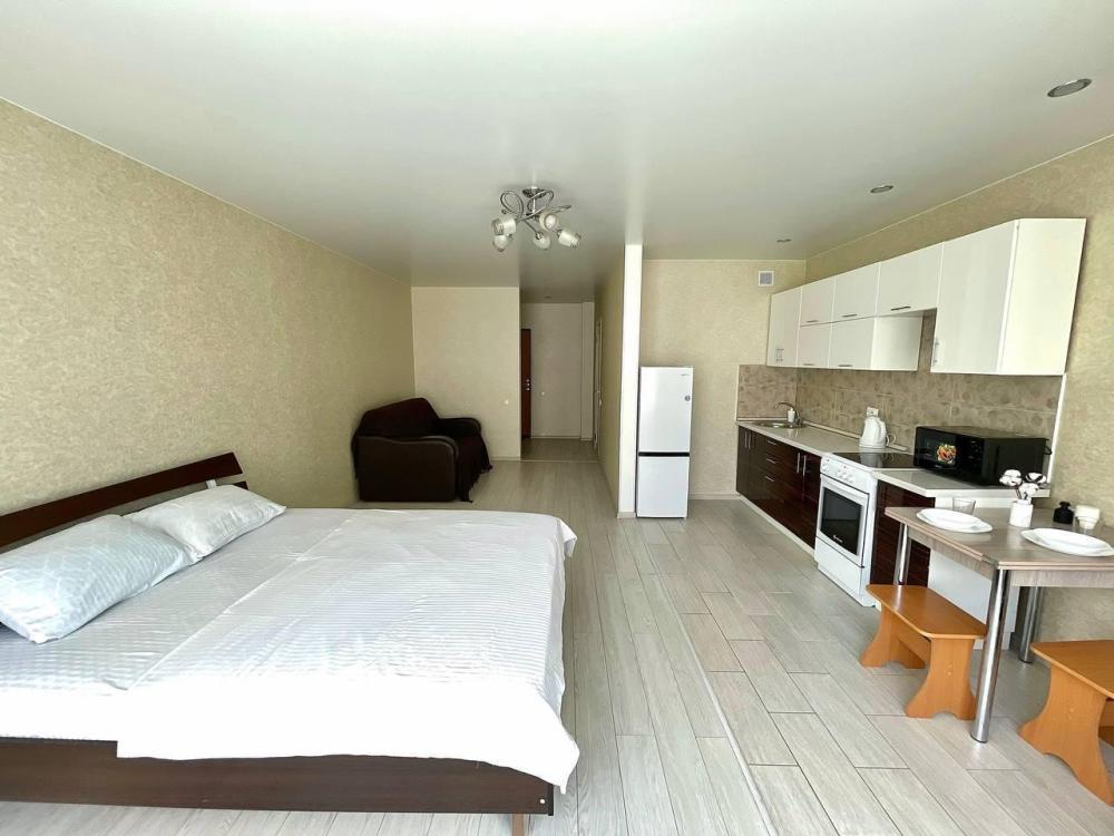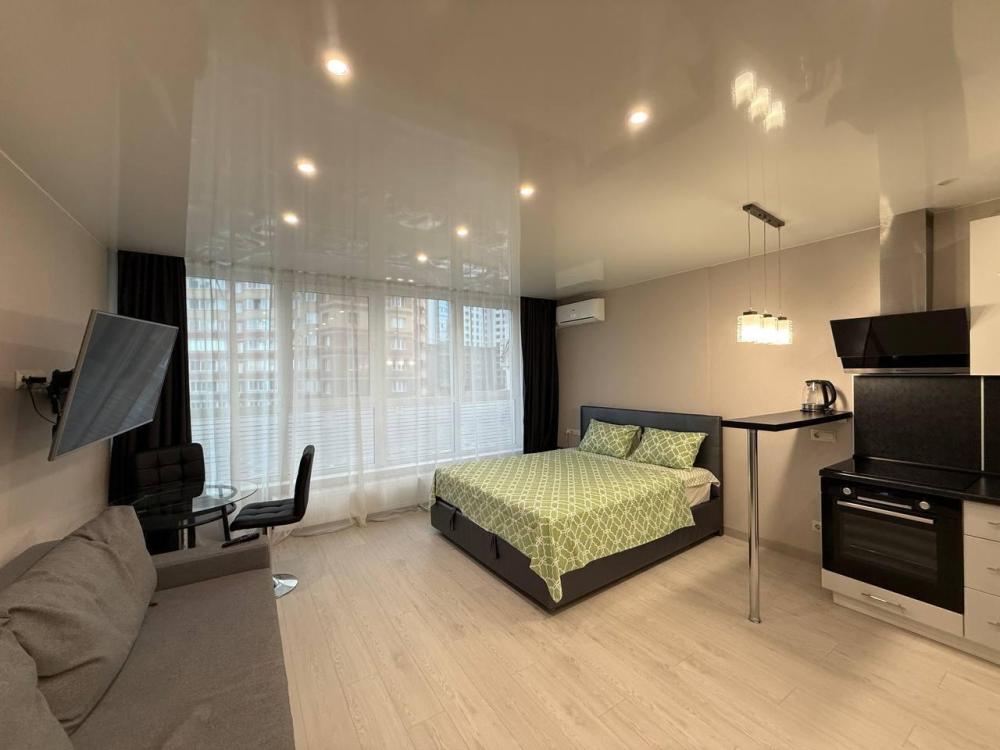 Уютные апартаменты студия для 4 гостей. Спальные места: двуспальная кровать, раскладной диван. В квартире предоставляются постельные принадлежности и полотенца, шампунь и гель для душа, набор посуды и кухонной утвари для готовки, фен, утюг с гладильной доской, стиральная машина, холодильник, плита, микроволновая печь, чайник, телевизор и бесплатный Wi-Fi.