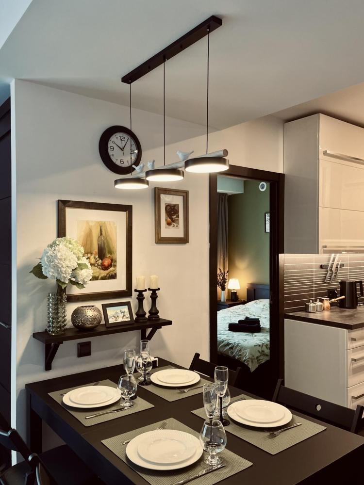 · Просторная гостиная, объединенная с полностью оборудованной кухней, станет местом для ваших уютных вечеров. А изолированная спальня с роскошной кроватью King-sze (1800х2000) гарантирует сладкий сон.