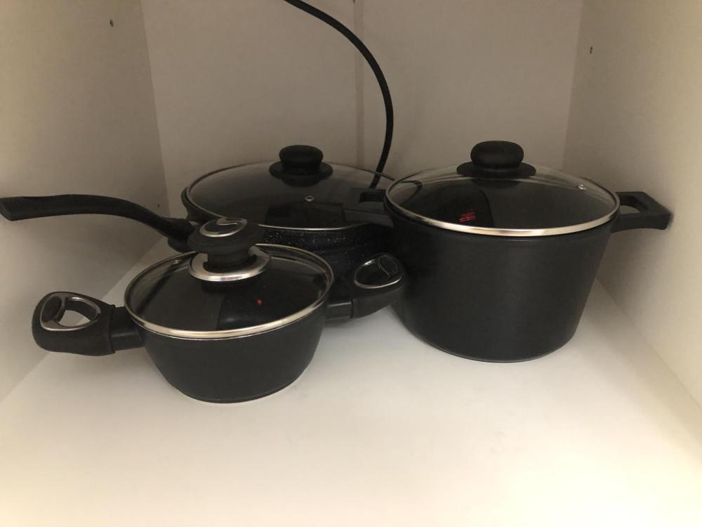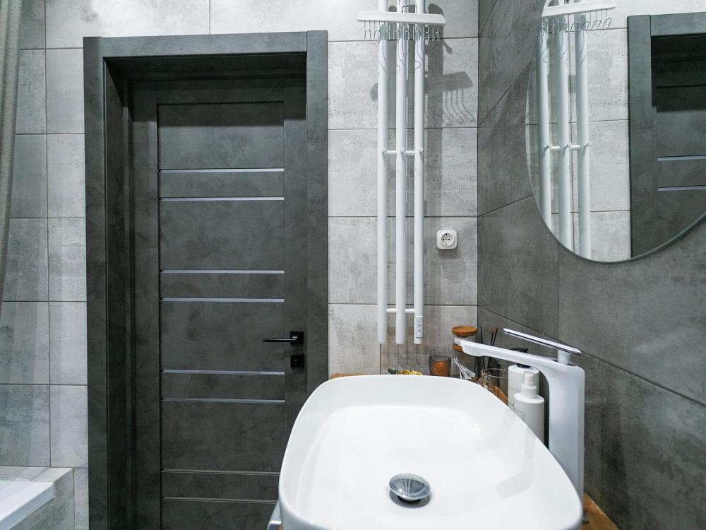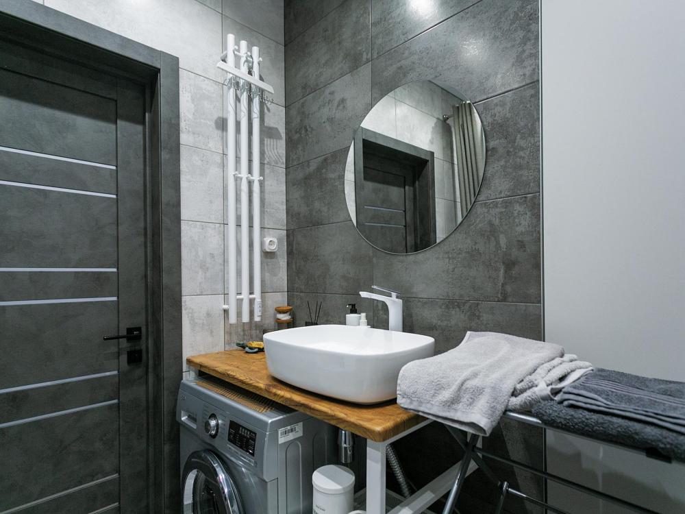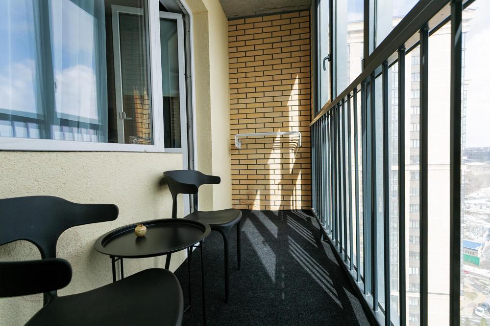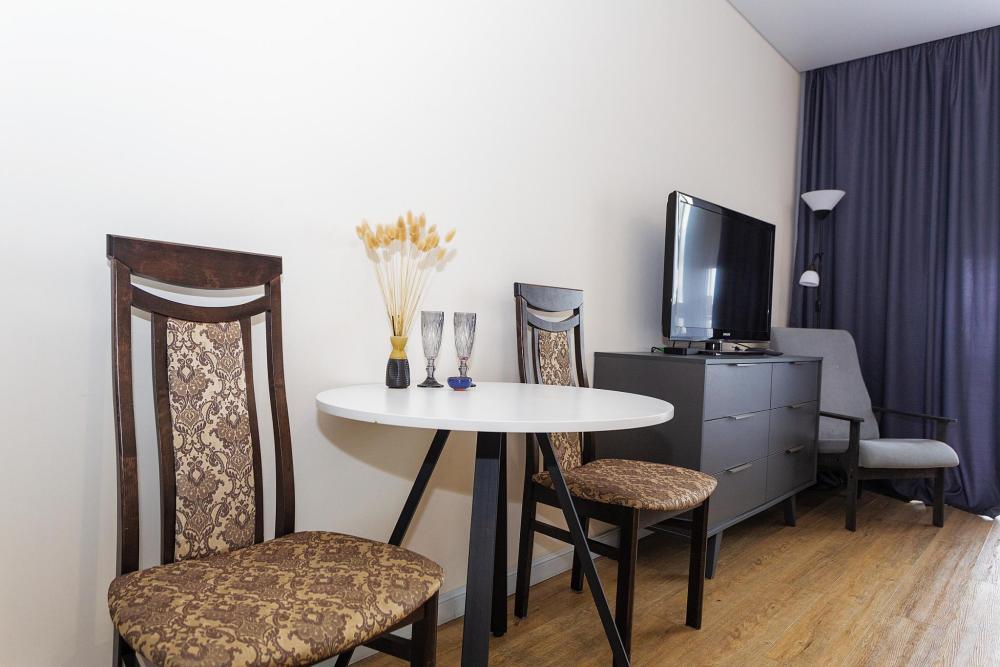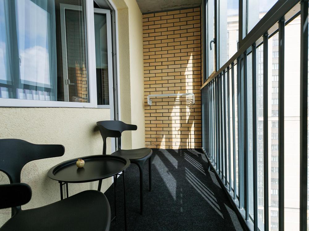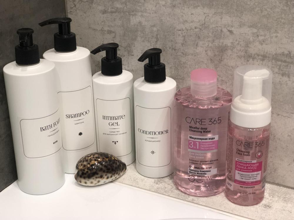 Уютные апартаменты студия, оборудованные всем необходимым для комфортного проживания. Оборудованная кухня включает варочную панель, холодильник, кофеварку, микроволновую печь, фильтр для воды, электрический чайник, сервировочную посуду, посуду для приготовления и бокалы для вина, шампанского и крепких напитков. Гостиная оборудована современной мебелью, телевизором, двуспальной кроватью с ортопедическим матрасом 160х200, креслом-кроватью односпальной, постельными принадлежностями, креслом, кондиционером, декоративным светом, утюгом и гладильной доской, шкафом и комодом, скоростным Wi-Fi и лоджией. В ванной комнате есть ванна и душ, водонагреватель, стиральная машина, фен и щипцы-выпрямитель для волос, сушилка для обуви, комплект махровых полотенец и тапочки. Средства личной гигиены включают шампунь, гель для душа, мыло, кондиционер для волос, зубную щетку и пасту, пенку для умывания и мицеллярную воду для снятия макияжа.