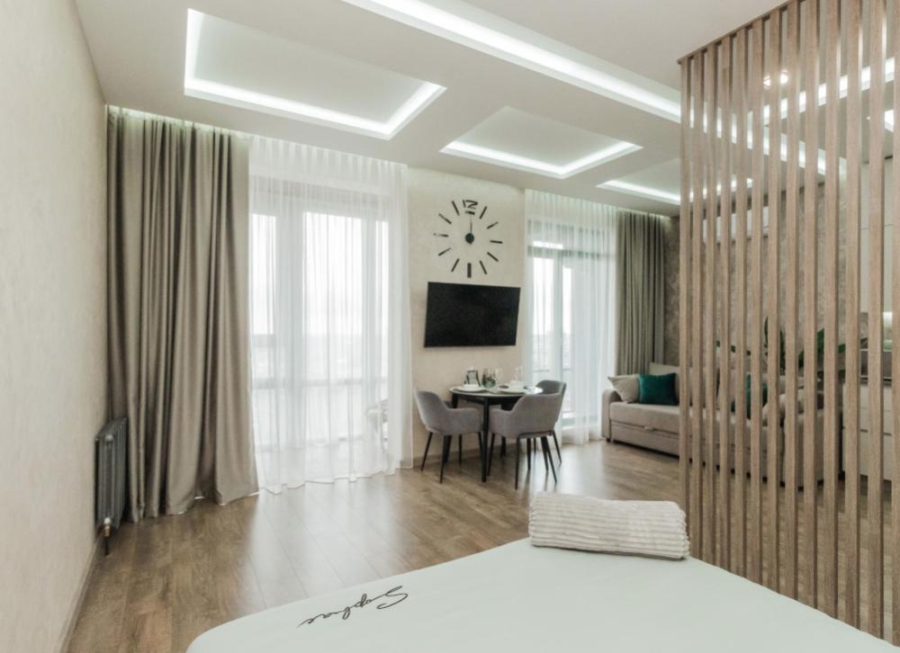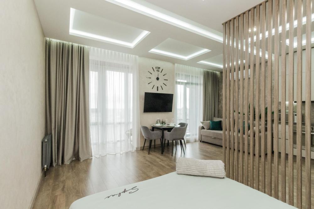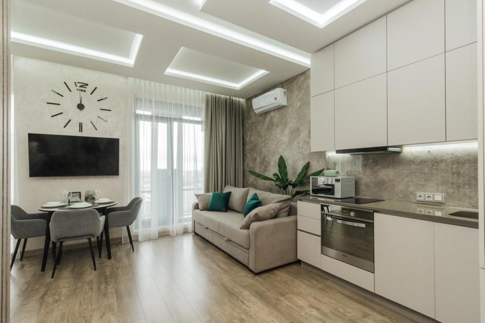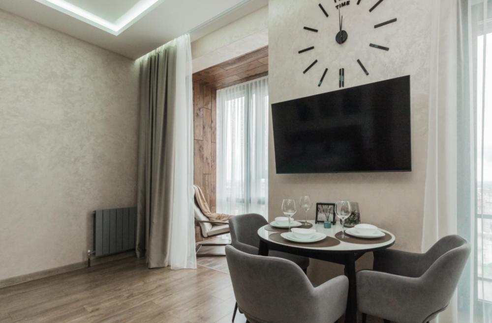 Ремонт выполнен по индивидуальному дизайн проекту с использованием качественных материалов. Есть все необходимое для комфортного проживания. Спальная зона: Двухместная кровать с удобным матрасом 160х200 см. Навесные тумбочки, светильники. Постельное белье. Подушки, одеяло, плед. Ванная комната: Для каждого гостя комплект из 2- хлопковых полотенец. Средства гигиены (жидкое мыло, гель для душа, кондиционер, шампунь, ватные диски и палочки, туалетная бумага, стиральный порошок). Душевая кабина. Гигиенический душ. Встроенный шкаф, в котором установлена стиральная машина и водонагреватель. Гостиная зона: Большой и удобный диван (может быть дополнительным спальным местом). Телевизор smart-tv, приставка wink. Обеденная зона на 3 персоны. Кондиционер. Зона кухни: Встроенный холодильник, духовая печь, микроволновая печь, посудомоечная машина, чайник. Посуда (бокалы, стаканы, кружки, тарелки, столовые приборы, кастрюли, сковорода, разделочная доски, ножи, прочая кухонная утварь). Установлен фильтр с питьевой водой. Чайно-кофейный набор. Прочие удобства: Зонированная лоджия с двойным стеклопакетом , теплым полом и удобным креслом. Скоростной Wi-Fi, телевидение. Вместительный шкаф-купе с вешалками для одежды. Утюг, гладильная доска и сушилка для белья. Набор бытовой химии для уборки, салфетки, швабра.