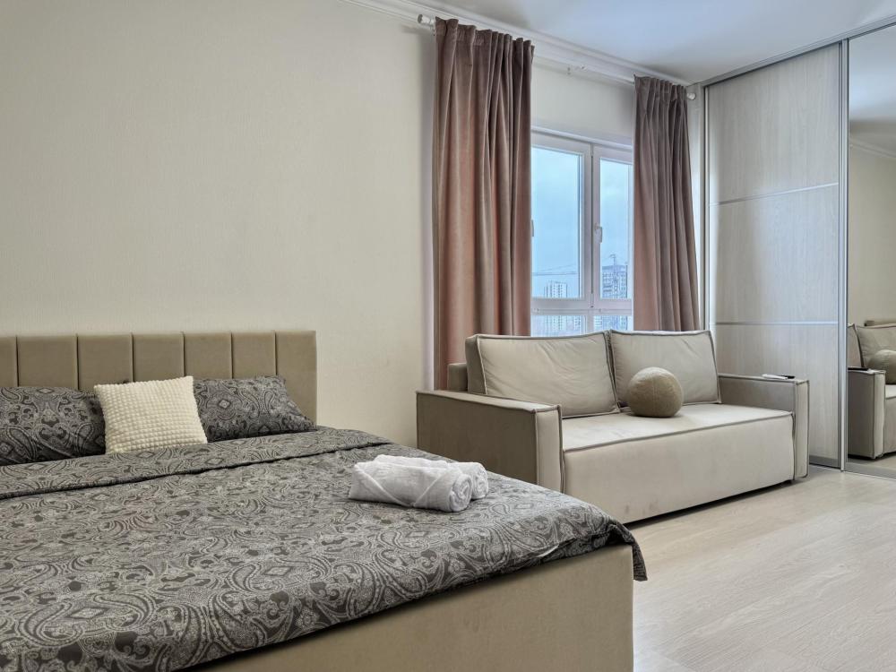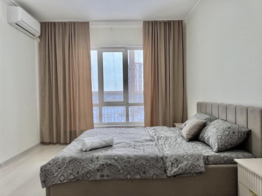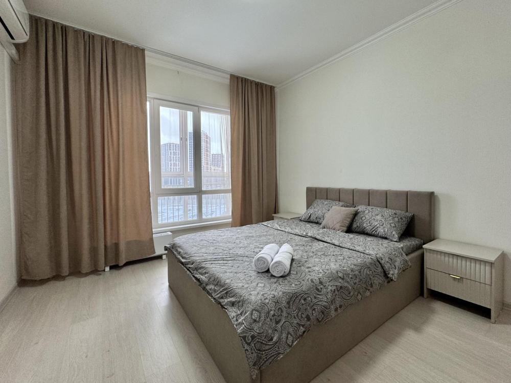 Просторная двушка с кондиционером у Аквапарка в новом микрорайоне Ясный берег. Комфортное расположение до 6-ти гостей: две двуспальные кровати queen-size, двуспальный диван-кровать, два Smart-TV, безлимитный Wi-Fi, холодильник с морозильной камерой, СВЧ, варочная панель, духовка, вытяжка с подсветкой, посудомоечная машина, водонагреватель, электрический чайник, стиральная машина, фен, утюг, кондиционер. Необходимая посуда и столовые приборы, а также постельное белье, полотенца на каждого гостя и средства личной гигиены.