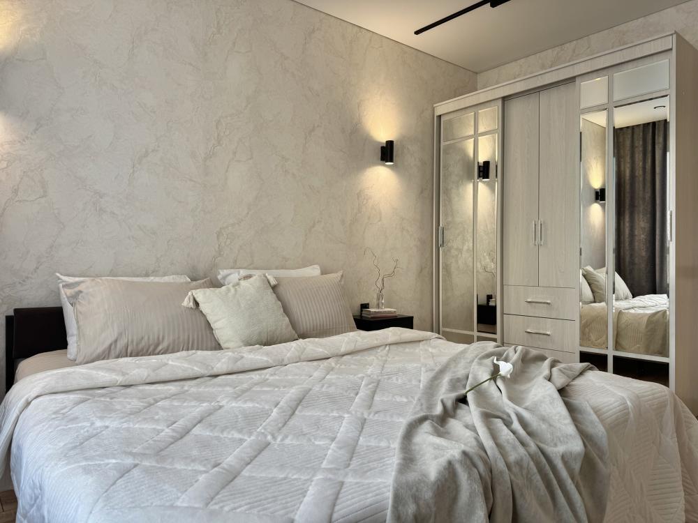 Современная евродвушка в стильном ЖК бизнес-класса "Прованс". Комфортное расположение до 4-х готсей: кровать king-size 180х200, двуспальный диван-кровать, два Smart-TV (в каждой комнате), безлимитный Wi-Fi, холодильник с морозильной камерой, СВЧ, духовка, варочная панель, вытяжка с подсветкой, электрический чайник, стиральная машина, фен, утюг. Необходимая посуда и столовые приборы, а также постельное белье, полотенца на каждого гостя и средства личной гигиены.