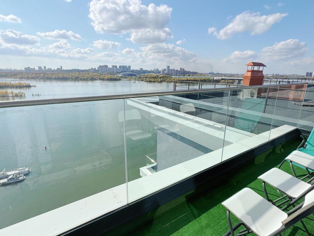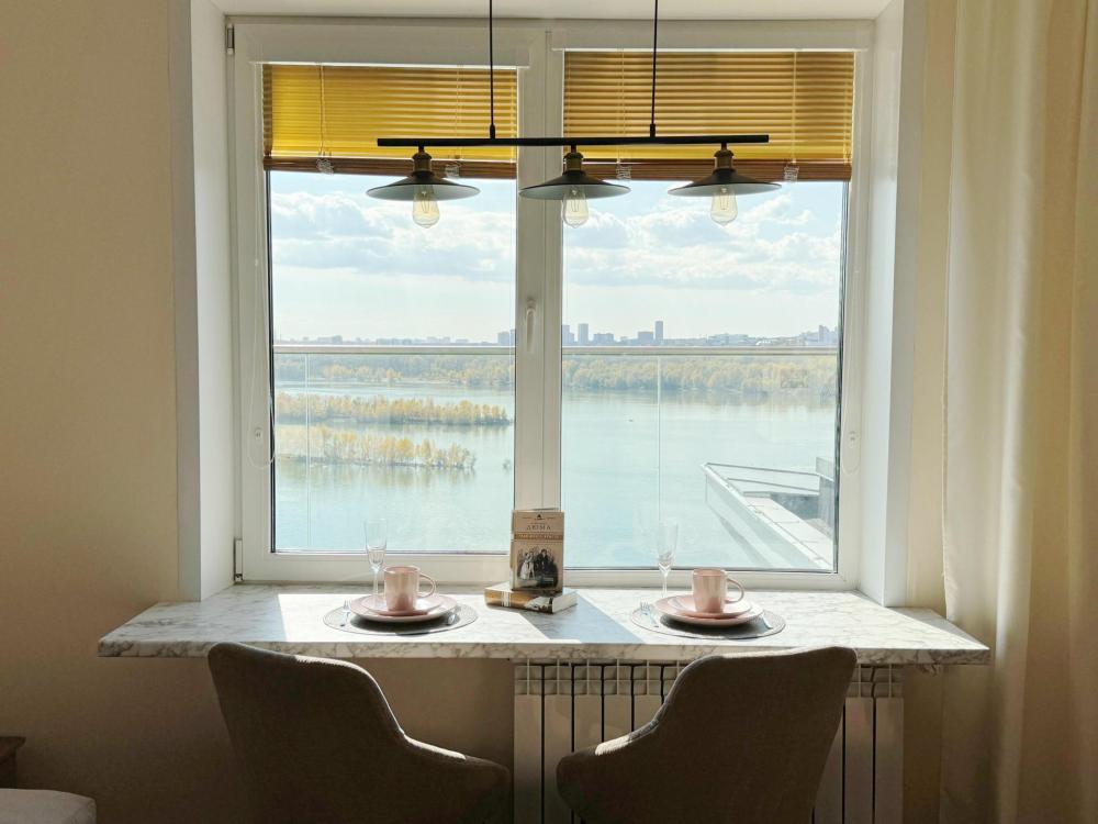 О квартире: * Просторная терраса с видом на реку Обь — идеальное место для утреннего кофе или вечернего отдыха. * Стильный и функциональный интерьер, вся необходимая техника. * Удобная кровать и раскладной диван. Комфортное размещение для 2-4 гостей. * Полностью укомплектованная кухня и вся необходимая посуда. * Чистое постельное белье, полотенца (банные и для лица), а также базовые средства гигиены (шампунь, гель для душа, жидкое мыло и зубные наборы) уже ждут вас.