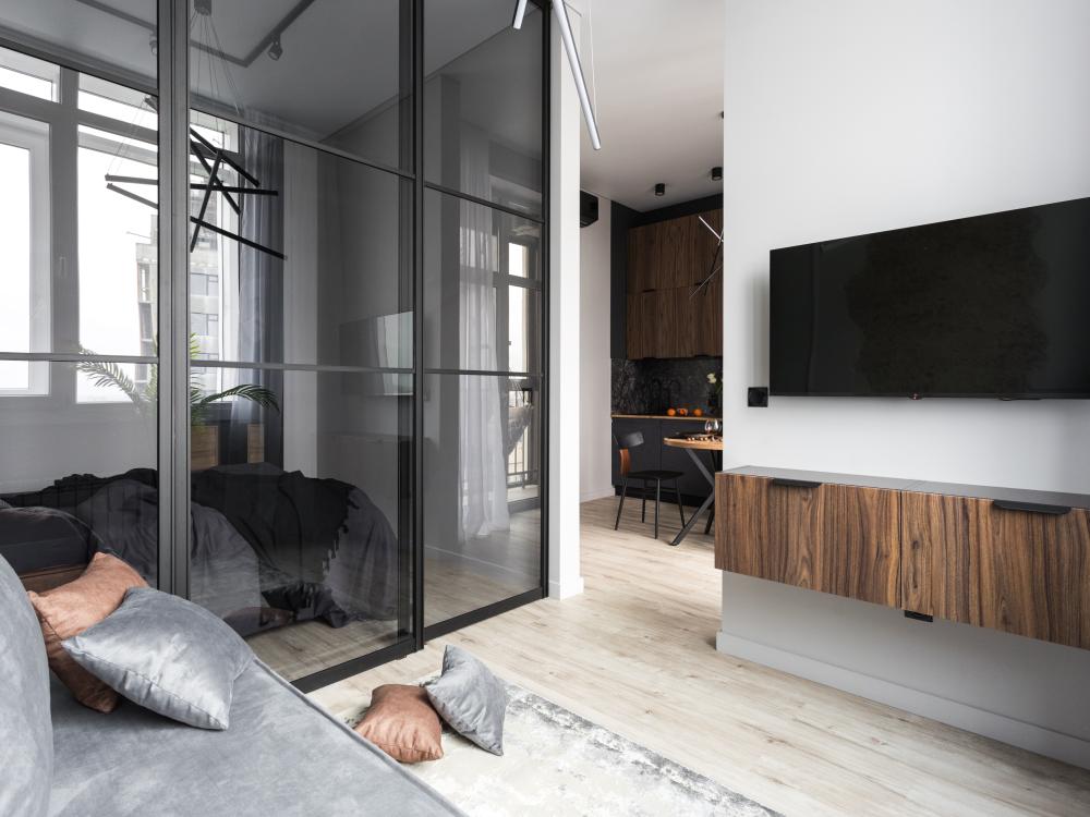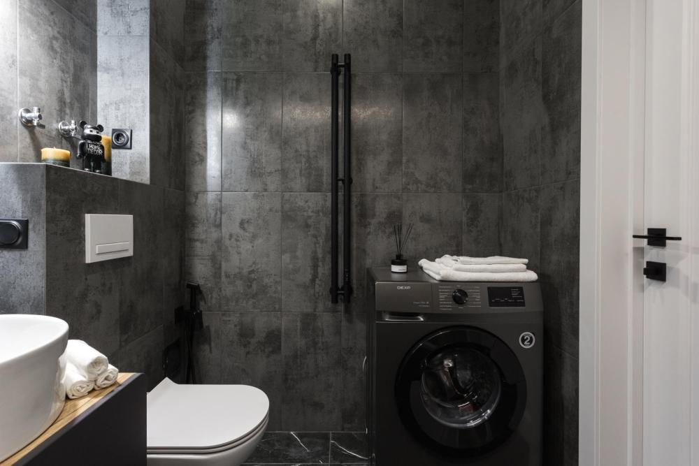 В апартаментах возможно размещение 4 человек. Спальные места: двуспальная кровать, раскладной диван. Кухня оборудована необходимой посудой и техникой: холодильник, варочная поверхность, микроволновая печь, электрический чайник. К услугам гостей также телевизор, wi-fi, стиральная машина, постельное белье, полотенца, утюг, фен.