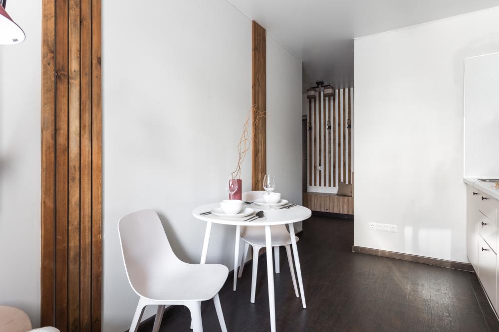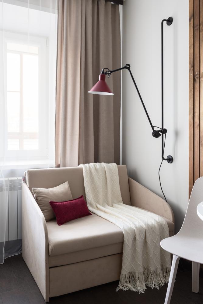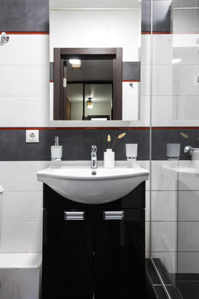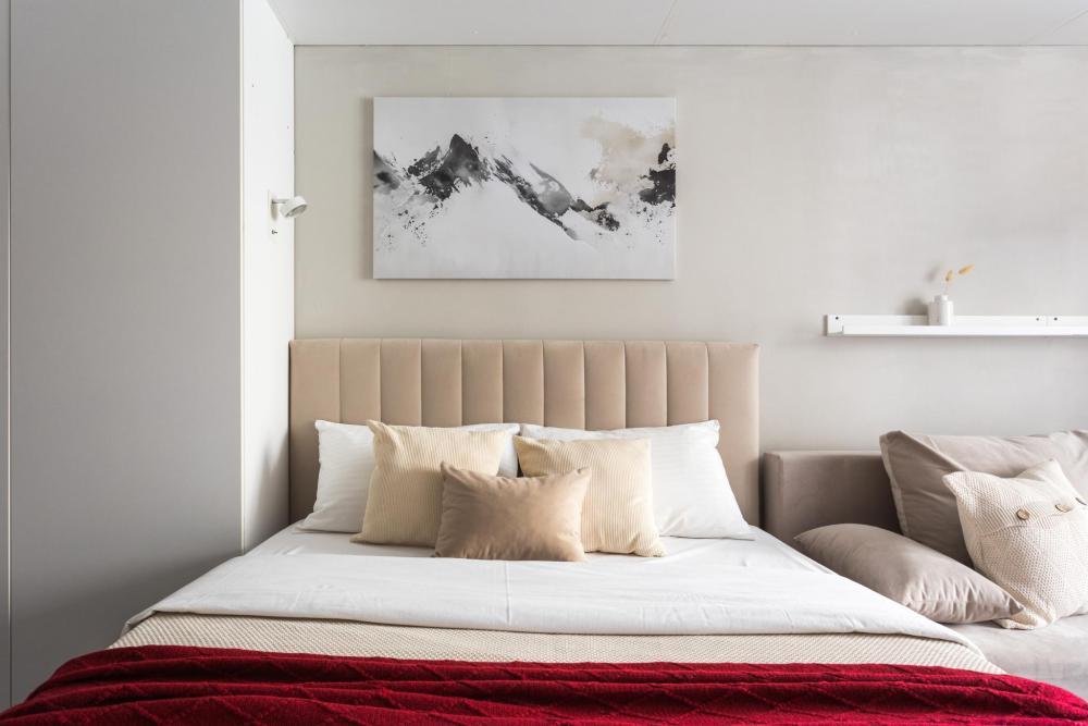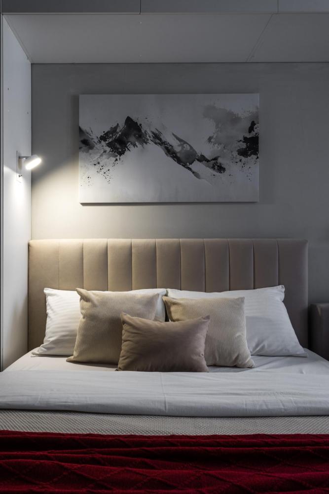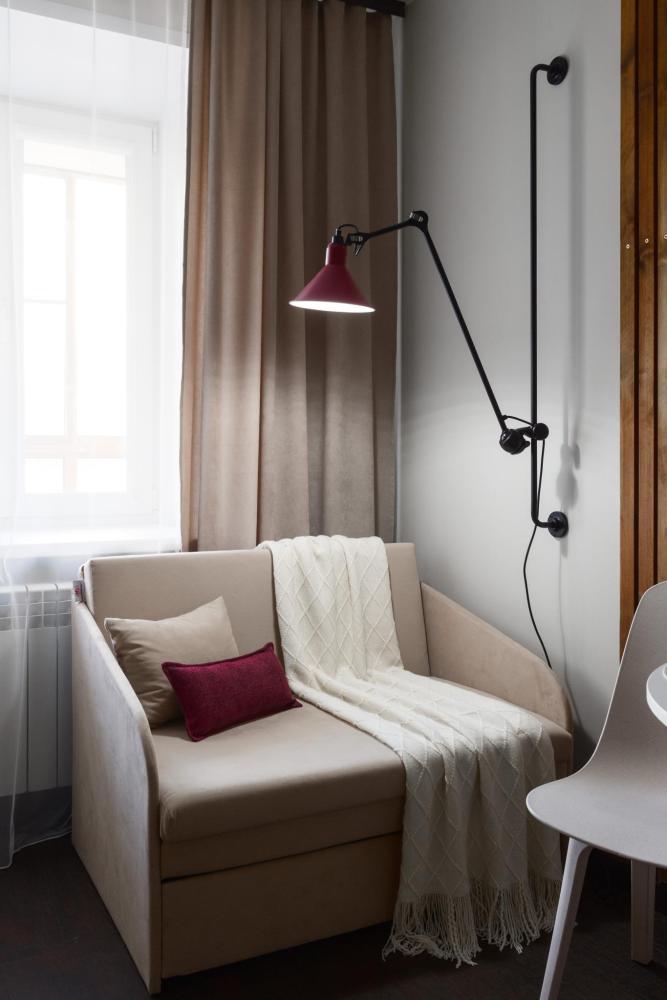 В апартаментах возможно размещение 4 человек. Спальные места: двуспальная кровать, раскладной диван. Кухня оборудована необходимой посудой и техникой: холодильник, варочная поверхность, микроволновая печь, электрический чайник. К услугам гостей также телевизор, wi-fi, стиральная машина, постельное белье, полотенца, утюг, фен.