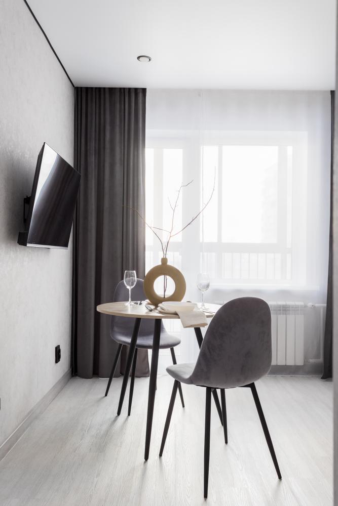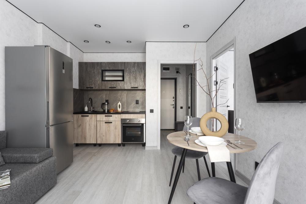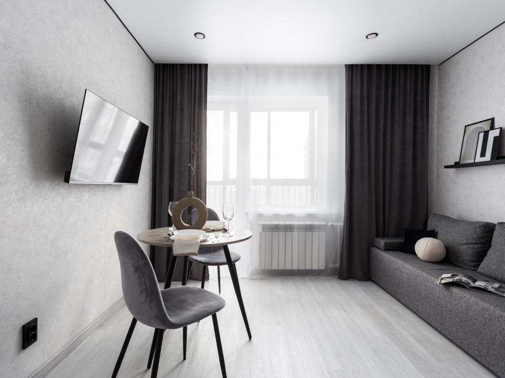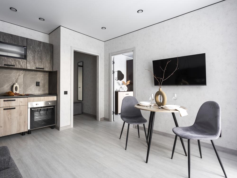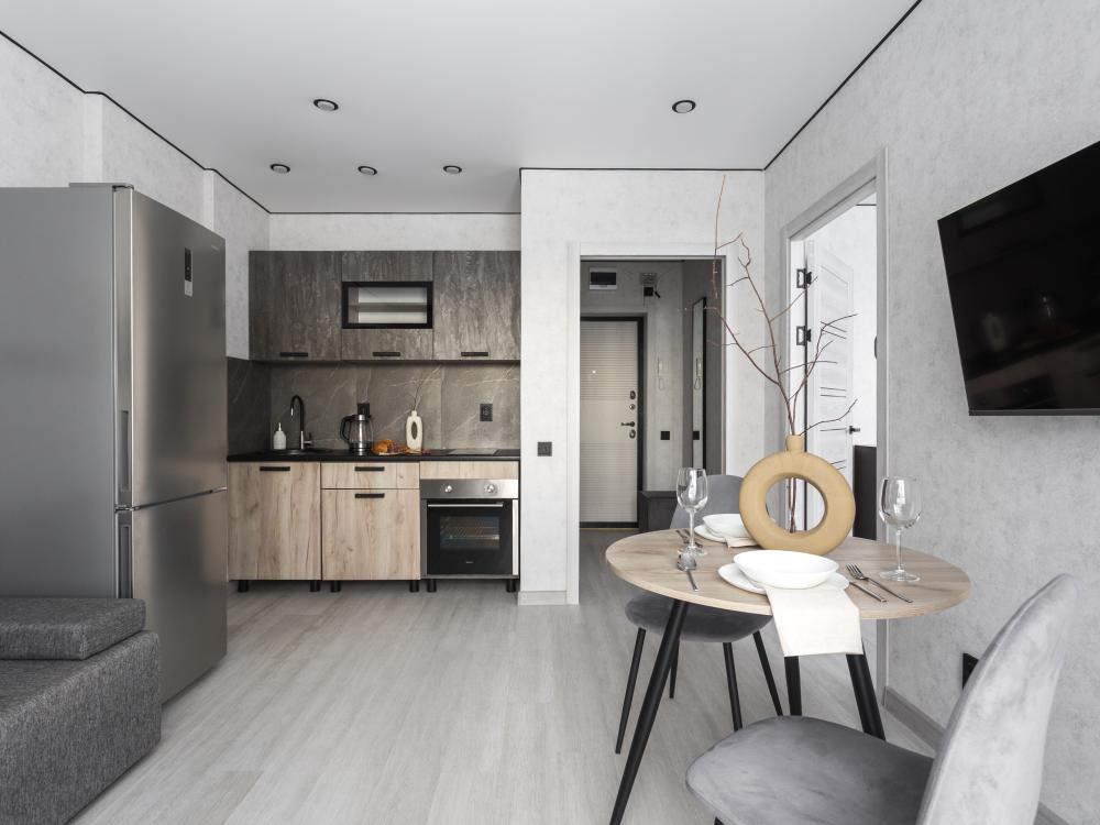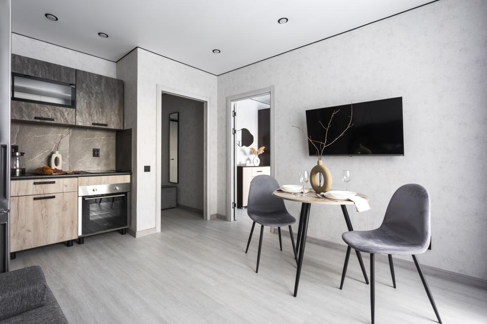 В апартаментах возможно размещение 4 человек. Спальные места: двуспальная кровать, раскладной диван. Кухня оборудована необходимой посудой и техникой: холодильник, варочная поверхность, духовой шкаф, микроволновая печь, электрический чайник. К услугам гостей также телевизор, wi-fi, стиральная машина, постельное белье, полотенца.