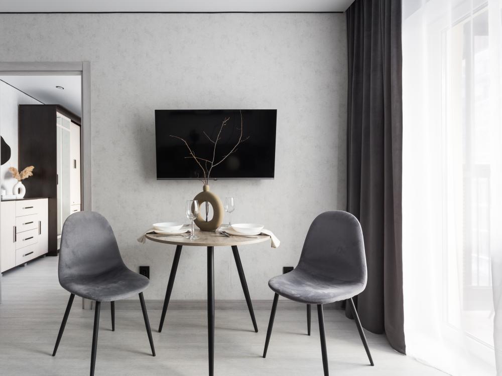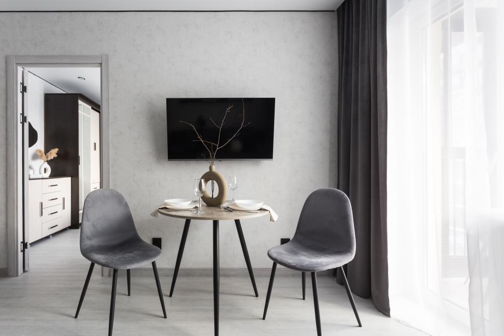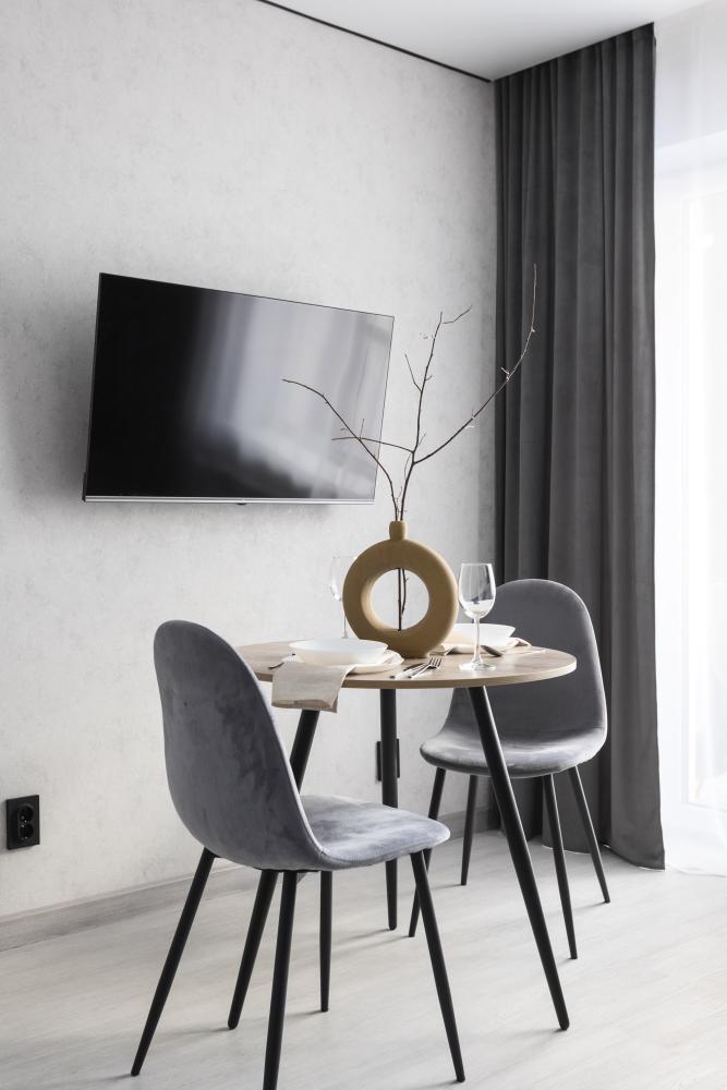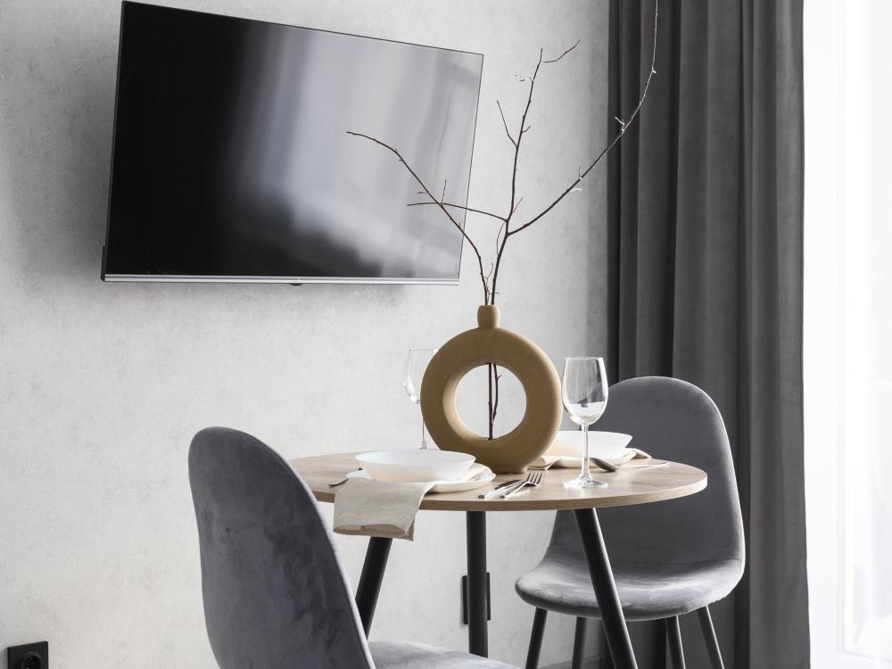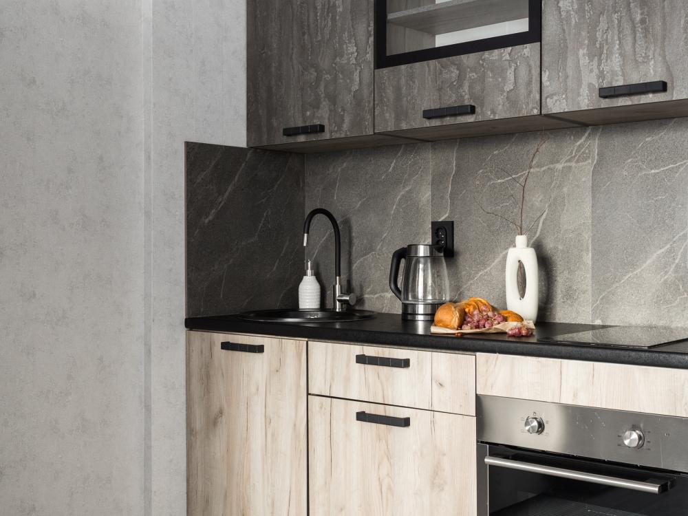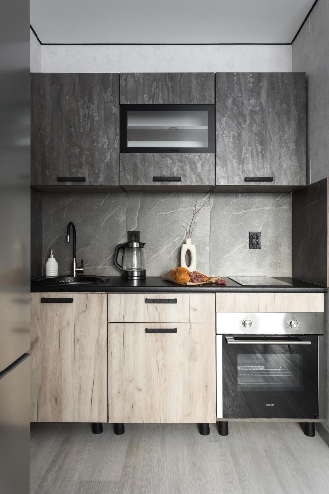 В апартаментах возможно размещение 4 человек. Спальные места: двуспальная кровать, раскладной диван. Кухня оборудована необходимой посудой и техникой: холодильник, варочная поверхность, духовой шкаф, микроволновая печь, электрический чайник. К услугам гостей также телевизор, wi-fi, стиральная машина, постельное белье, полотенца.