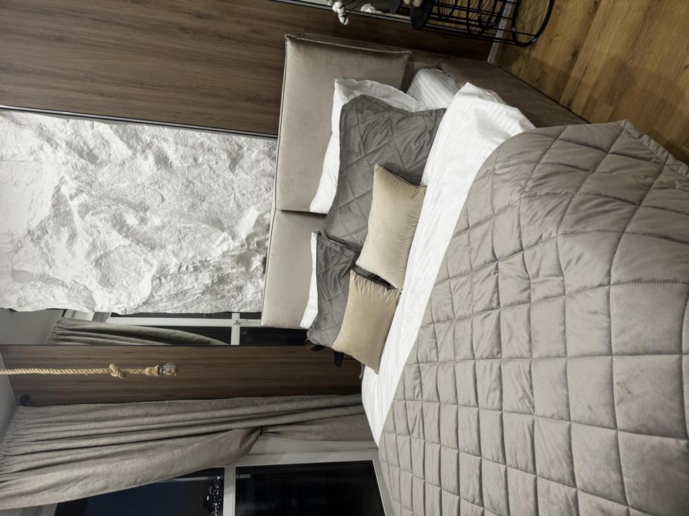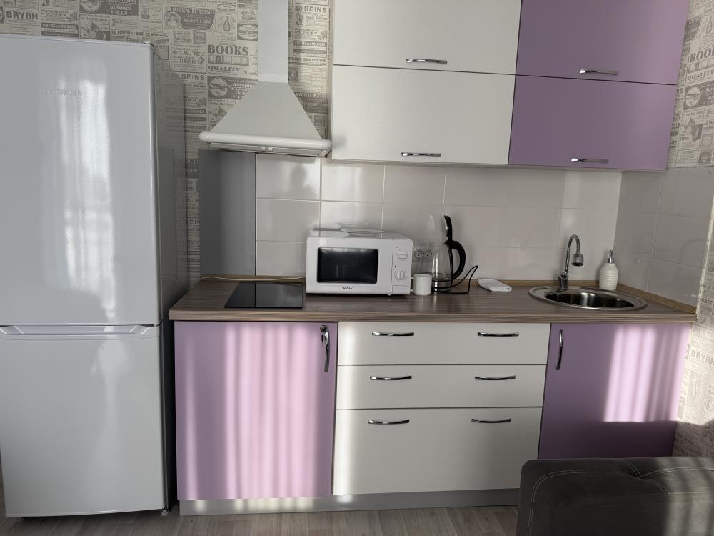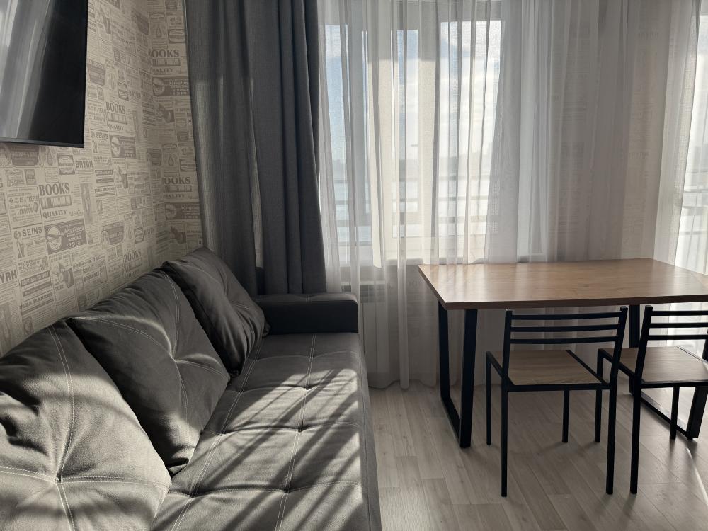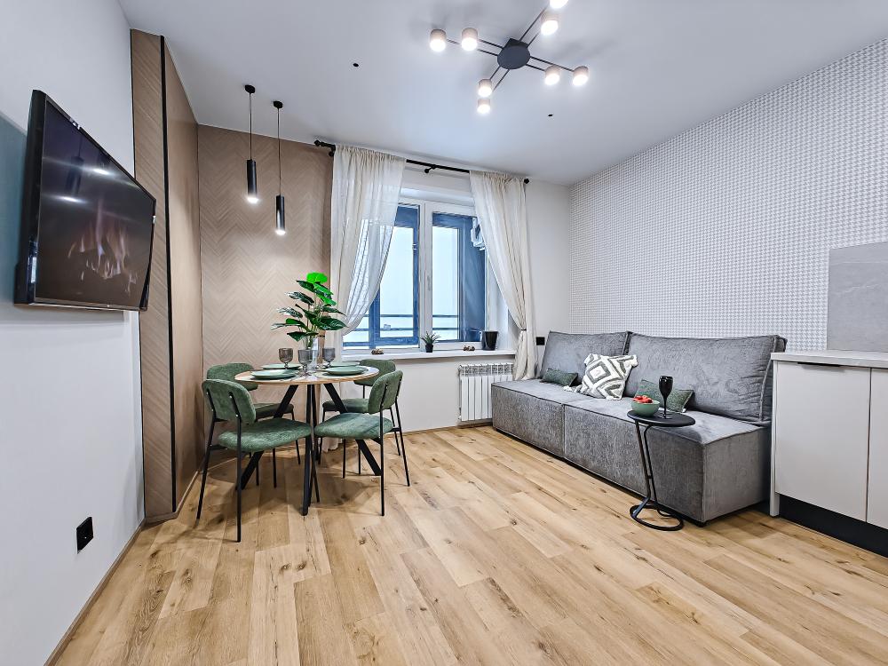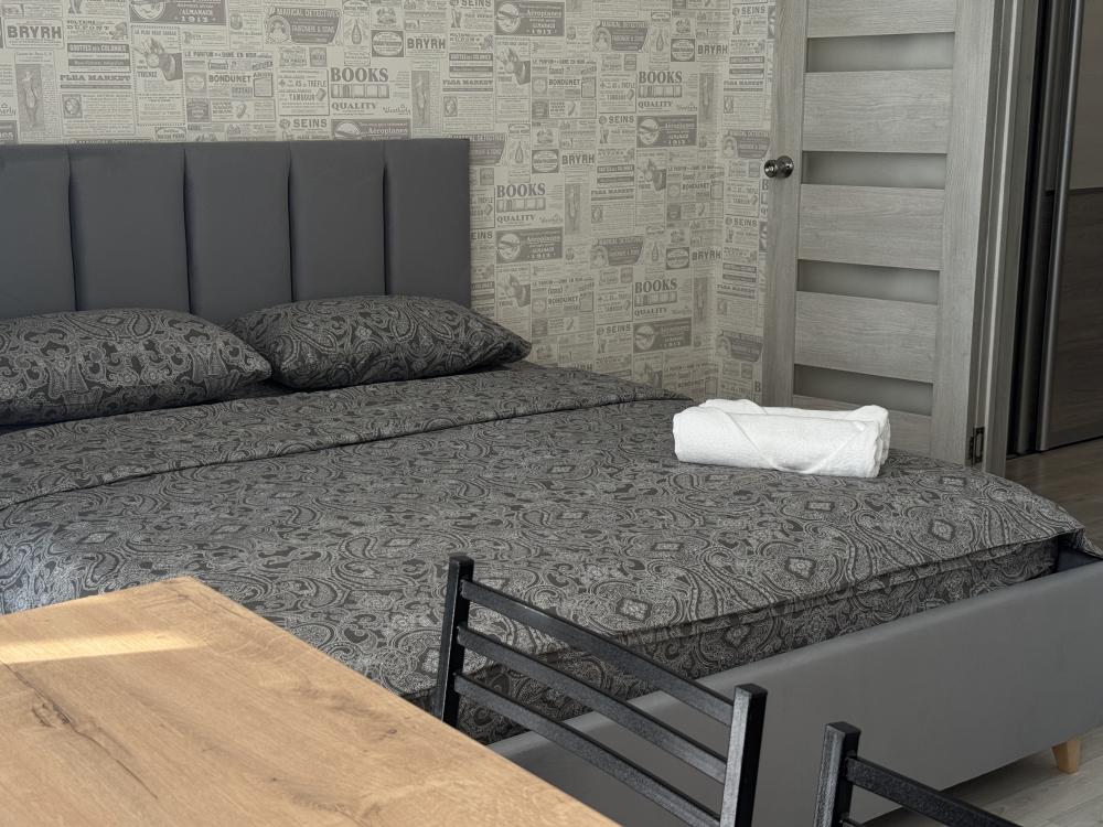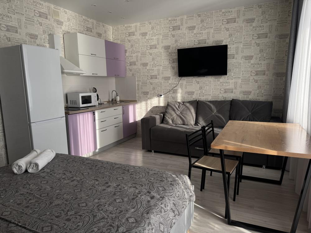 В апартаментах возможно размещение 4 человек. Спальные места: двуспальная кровать, раскладной диван. Кухня оборудована необходимой посудой и техникой: холодильник, варочная поверхность, микроволновая печь, электрический чайник. К услугам гостей также телевизор, wi-fi, стиральная машина, постельное белье, полотенца, утюг, фен.
