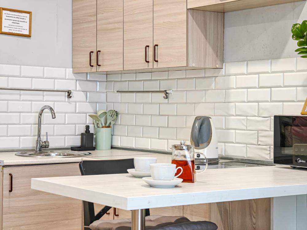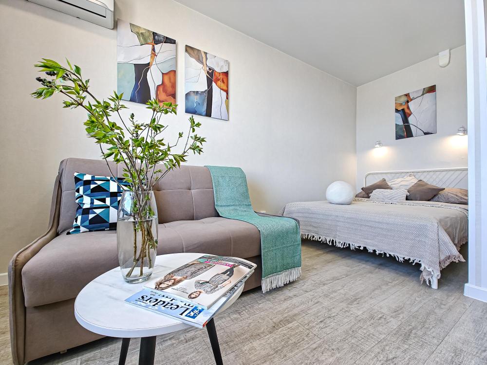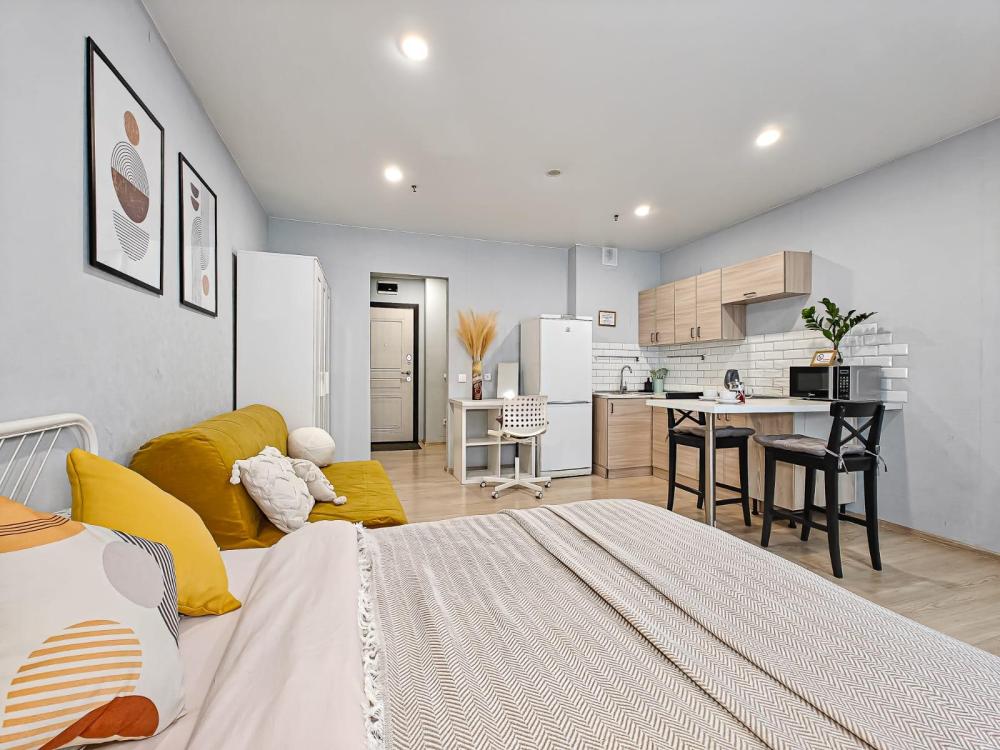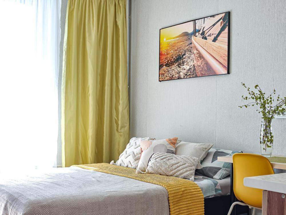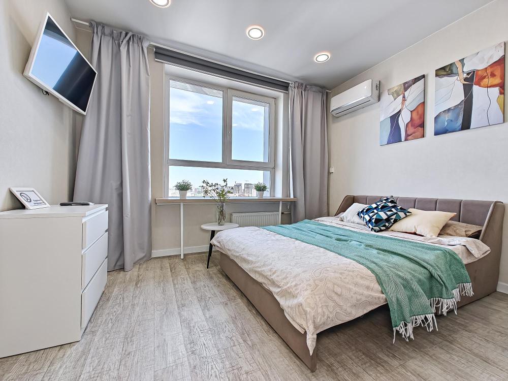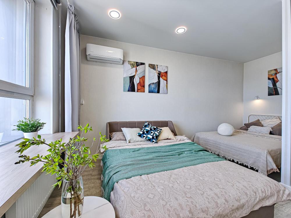 В квартире есть все необходимое для комфортного проживания: кровать с шикарным высоким ортопедическим матрасом, бытовая техника - плита, посуда,холодильник, утюг, гладильная доска, стиральная машина, фен; высокоскоростной интернет, бесплатный wi-fi, TV, кондиционер, чистое хлопковое постельное белье, полотенца, тапочки, мыло, гель для душа, средства гигиены, фильтр для воды. Халат предоставляется по запросу. В некоторых апартаментах есть балкон.