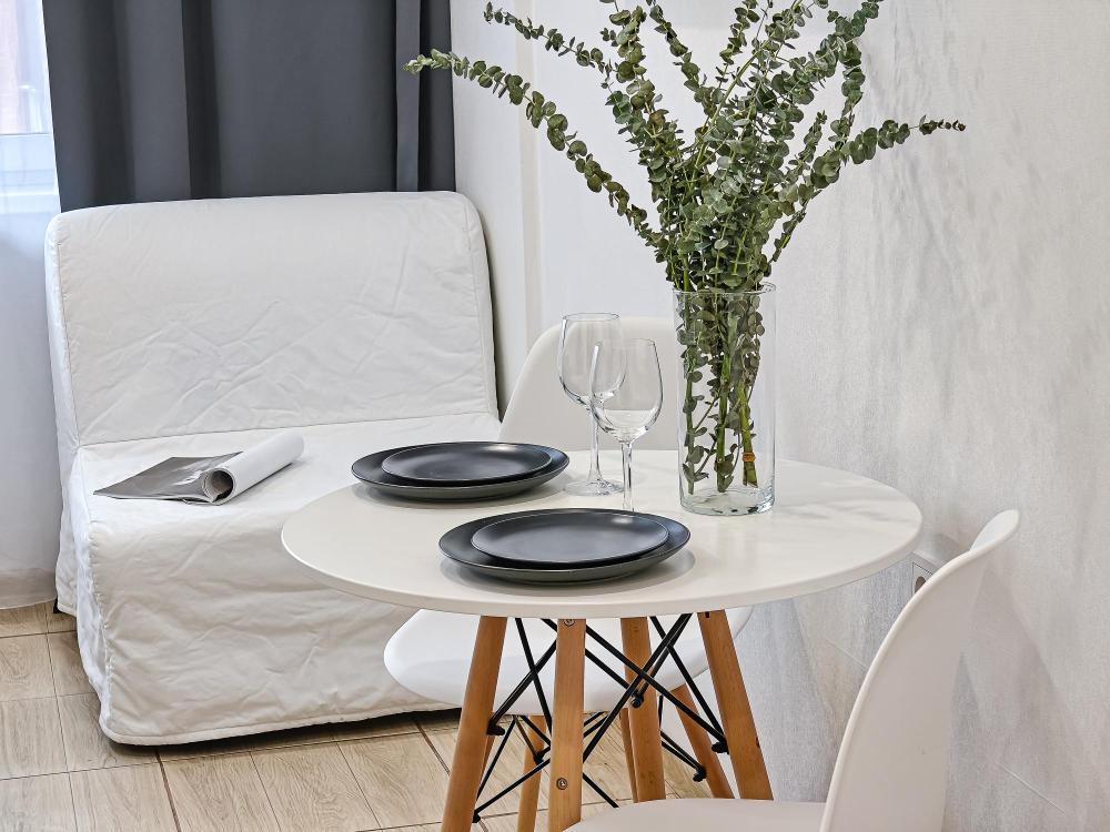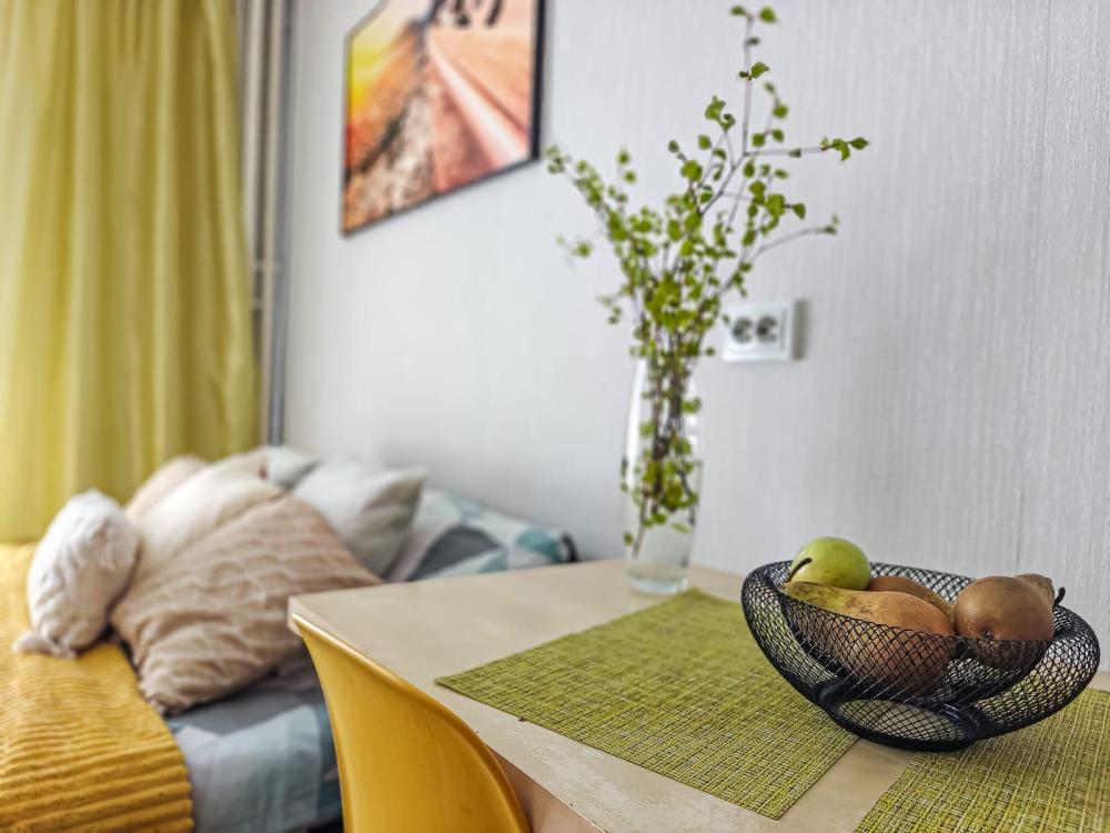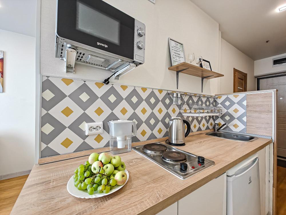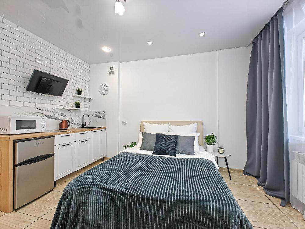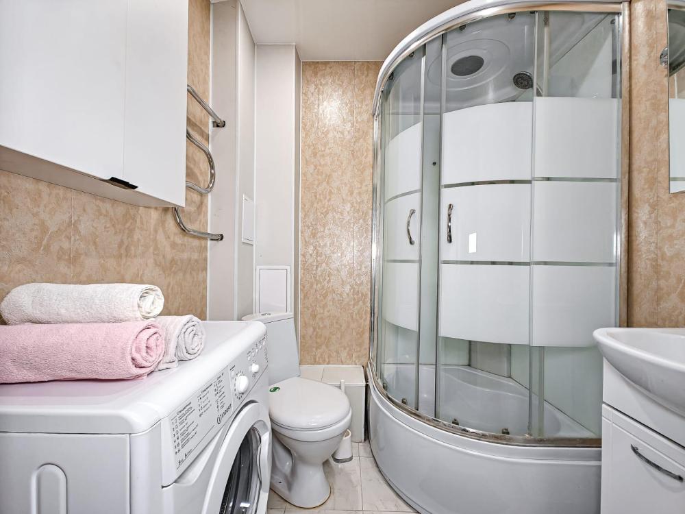В квартире есть все необходимое для комфортного проживания: кровать с шикарным высоким ортопедическим матрасом, бытовая техника - плита, посуда,холодильник, утюг, гладильная доска, стиральная машина, фен; высокоскоростной интернет, бесплатный wi-fi, TV, чистое хлопковое постельное белье, полотенца, тапочки, мыло, гель для душа, средства гигиены, фильтр для воды. Халат предоставляется по запросу. В некоторых апартаментах есть балкон.