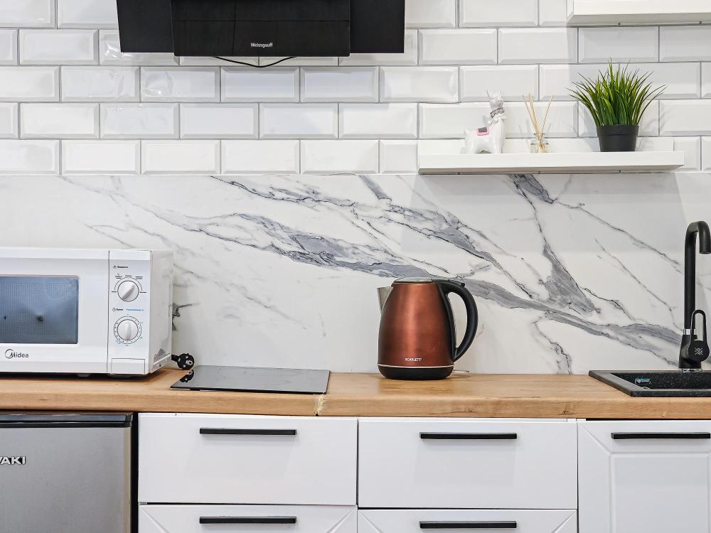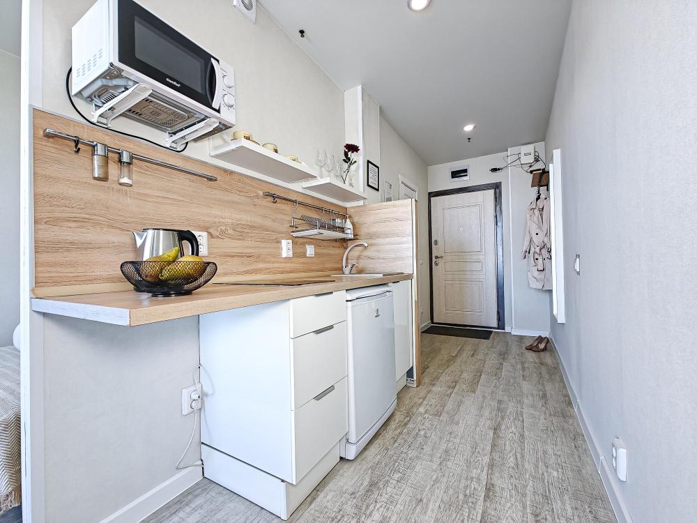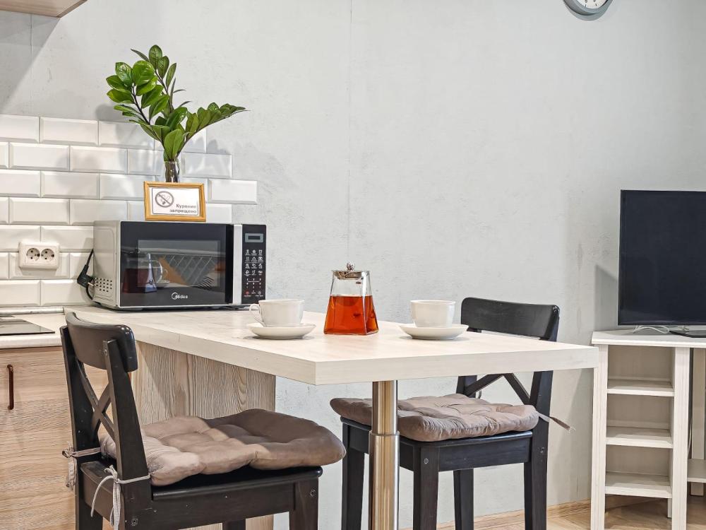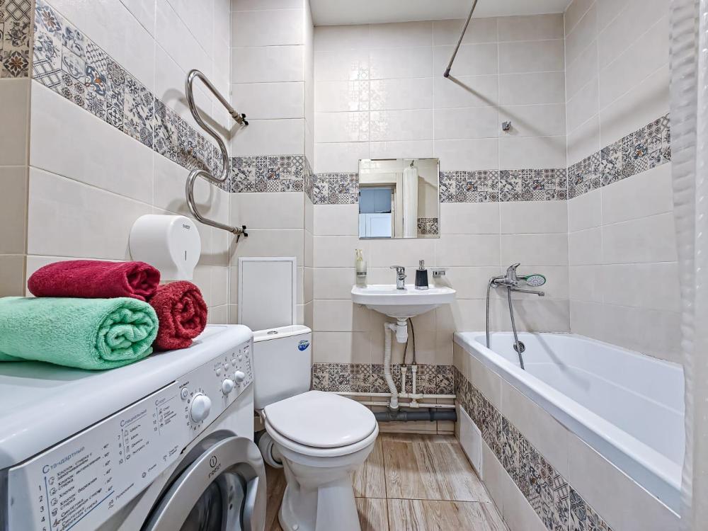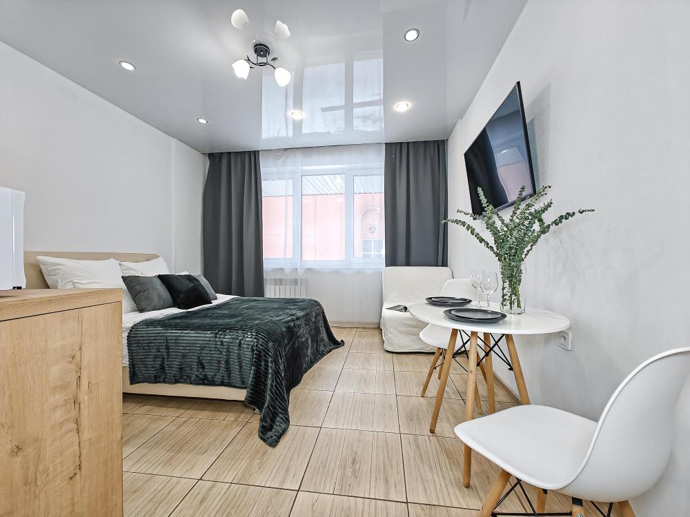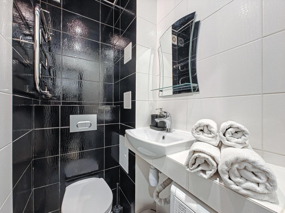В квартире есть все необходимое для комфортного проживания: кровать с шикарным высоким ортопедическим матрасом, бытовая техника - плита, посуда,холодильник, утюг, гладильная доска, стиральная машина, фен; высокоскоростной интернет, бесплатный wi-fi, TV, чистое хлопковое постельное белье, полотенца, тапочки, мыло, гель для душа, средства гигиены, фильтр для воды. Халат предоставляется по запросу. В некоторых апартаментах есть балкон.