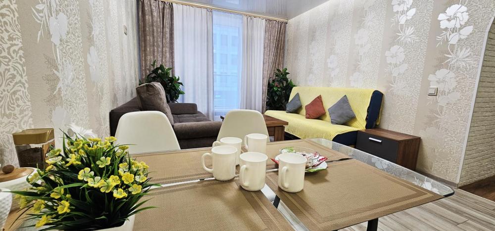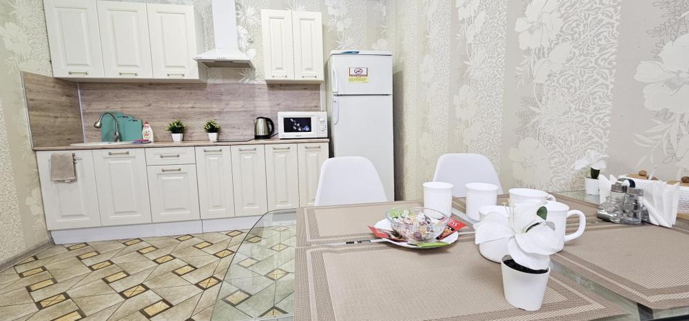 Уважаемые гости, предлагаем Вам посетить нашу большую, яркую, уютную 3х комнатную студию. В этой квартире Вас ждет 2 изолированные комнаты с кроватями KING SIZE и очень удобными матрацами, кухня - гостиная где Вы можете приготовить еду, попить кофе, отдохнуть. Тут помимо кухонного стола есть журнальный стол, раскладывающийся в большой кухонный, ведь если Вы приезжаете большой компанией всегда приятно вместе сидеть за столом и обсуждать полученные эмоции за день. Так же в гостиной 2 двуспальных дивана и вся необходимая посуда и принадлежности на 8 персон. Квартира с французскими окнами не оставит Вас равнодушными. Балкона нет, НО рядом с квартирой выход во внутренний двор, который находится на уровне 2го этажа, где расположены уютные лавочки, качели, место для курения. Весь дизайн дома и внутреннего двора напоминает отели Турции и Тайланда. Спальных мест 2+2+2+2. Улица напоминает город в городе, где расположены магазины, кафе, рестораны. Под Вами на 1ом этаже будет кофейня-кондитерская и продуктовый магазин. (можно ходить прямо в тапках:)))