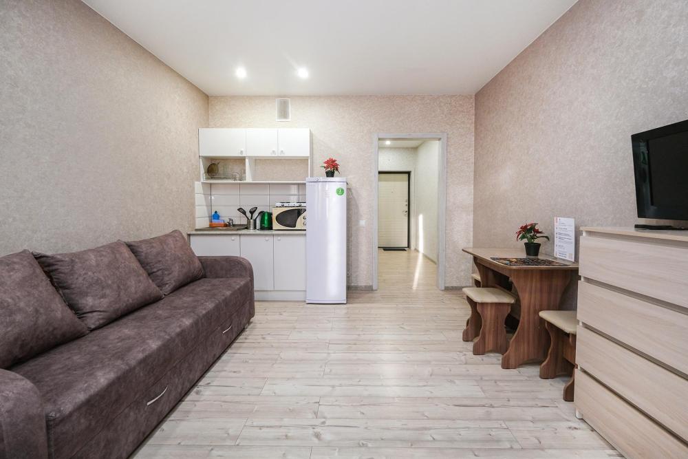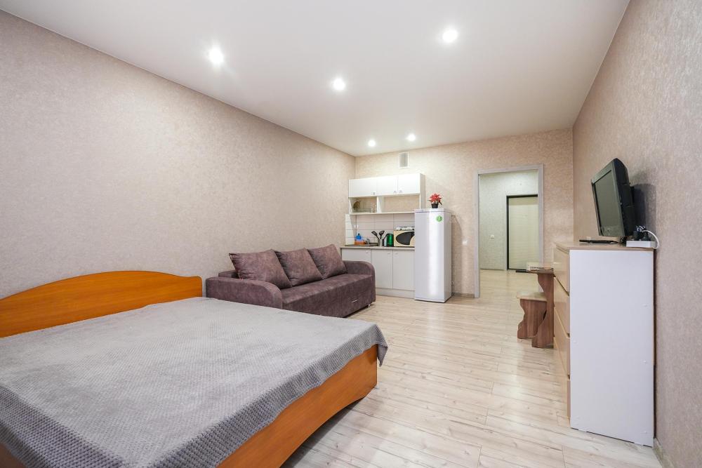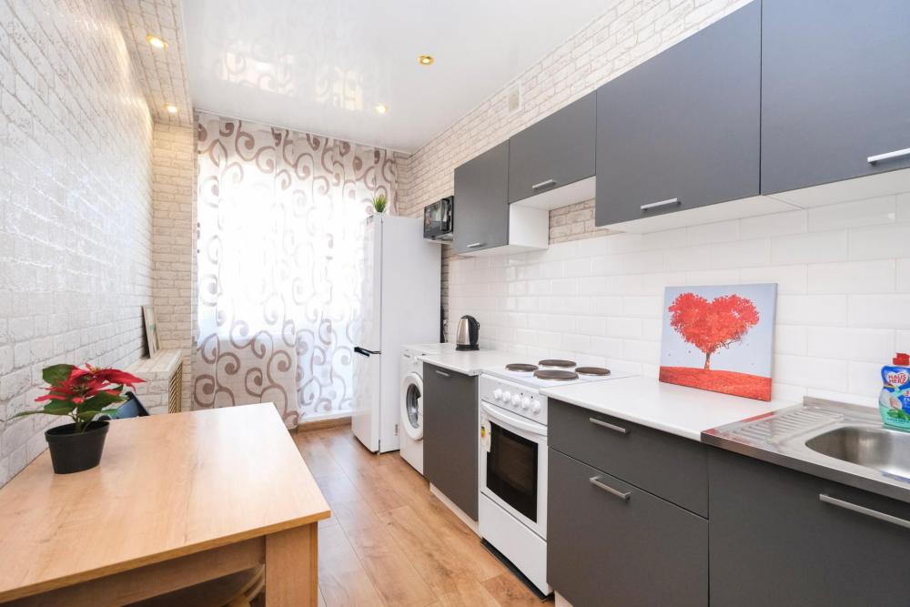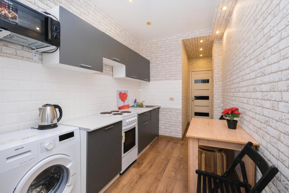 Уютные апартаменты с одной спальней рядом с Нейрохирургией. Комфортное размещение 4 человек. Для гостей: двуспальная кровать, удобный диван-кровать, цифровое TV, машинка-автомат, Wi-Fi, индивидуальный гигиенический набор, чистое постельное белье и полотенца, тапочки, фен, утюг, фильтр для воды, обустроенная кухня со всей необходимой техникой. В апартаментах имеется все, чтобы почувствовать себя как дома.