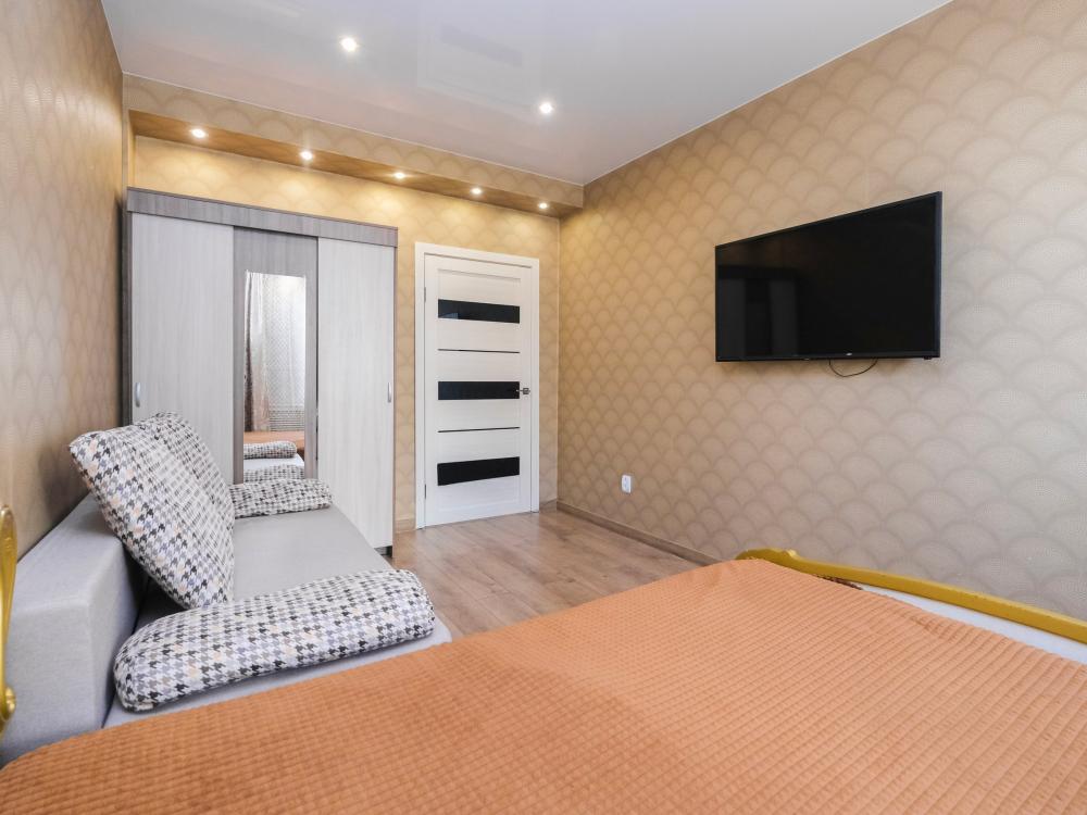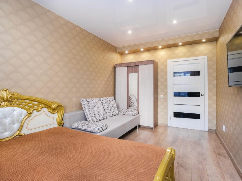 Апартаменты с одной спальней у метро Студенческая. Комфортное размещение 4 человек. Для гостей: двуспальная кровать, удобный диван-кровать, бойлер, цифровое TV, машинка-автомат, Wi-Fi, индивидуальный гигиенический набор, чистое постельное белье и полотенца, тапочки, фен, утюг, фильтр для воды, обустроенная кухня со всей необходимой техникой. В апартаментах имеется все, чтобы почувствовать себя как дома.