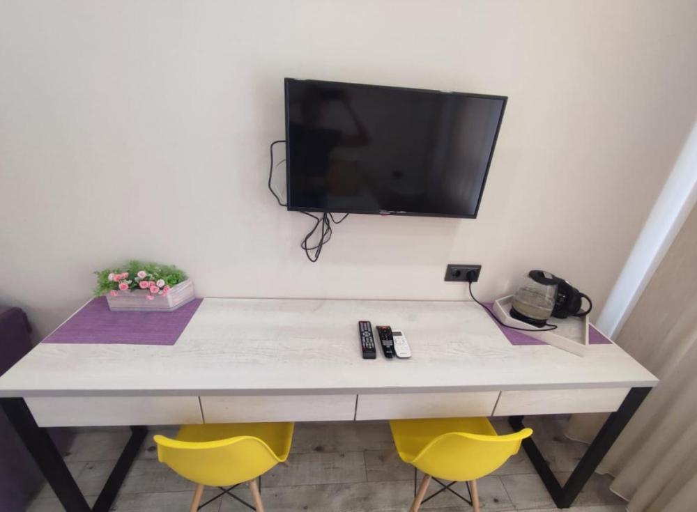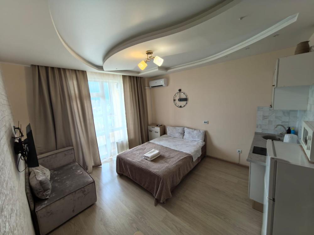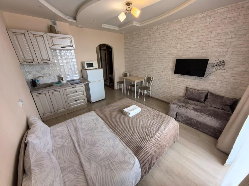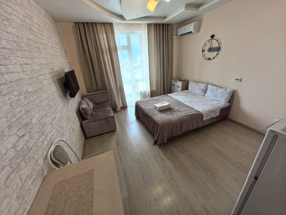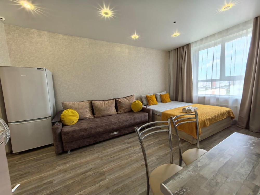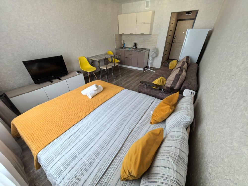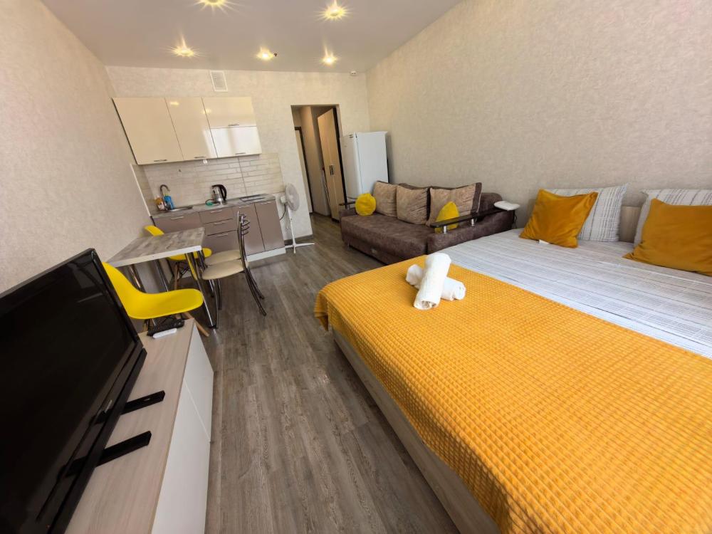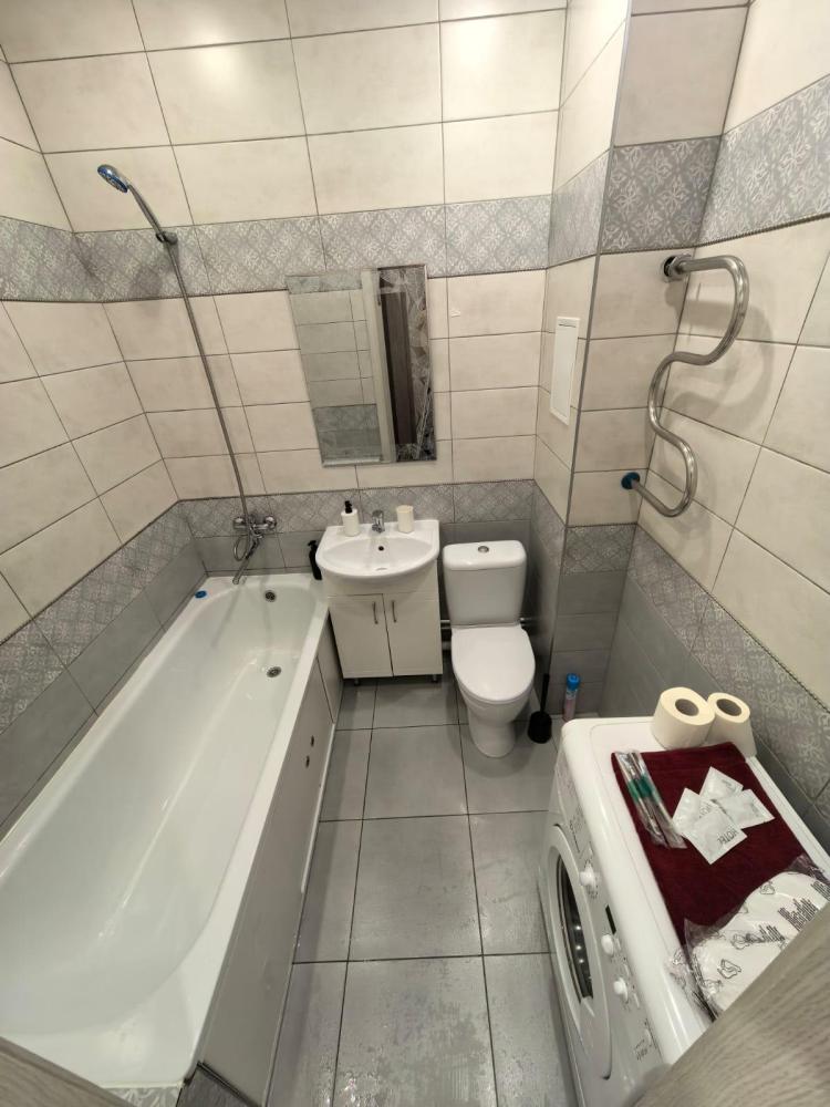 Новая, уютная квартира в центральной части города. В квартире есть все для комфортного проживания: двуспальная кровать с удобным, высоким матрасом, ЖК телевизор, приставка от Ростелекома с более 200 каналов и 5000 доступных фильмов, кухонная зона с полным комплектом посуды, утюг, гладильная доска, всегда чистое постельное белье из качественного материала, комплекты полотенец для каждого гостя, средства гигиены, тапочки, аптечка, набор иголок и ниток.