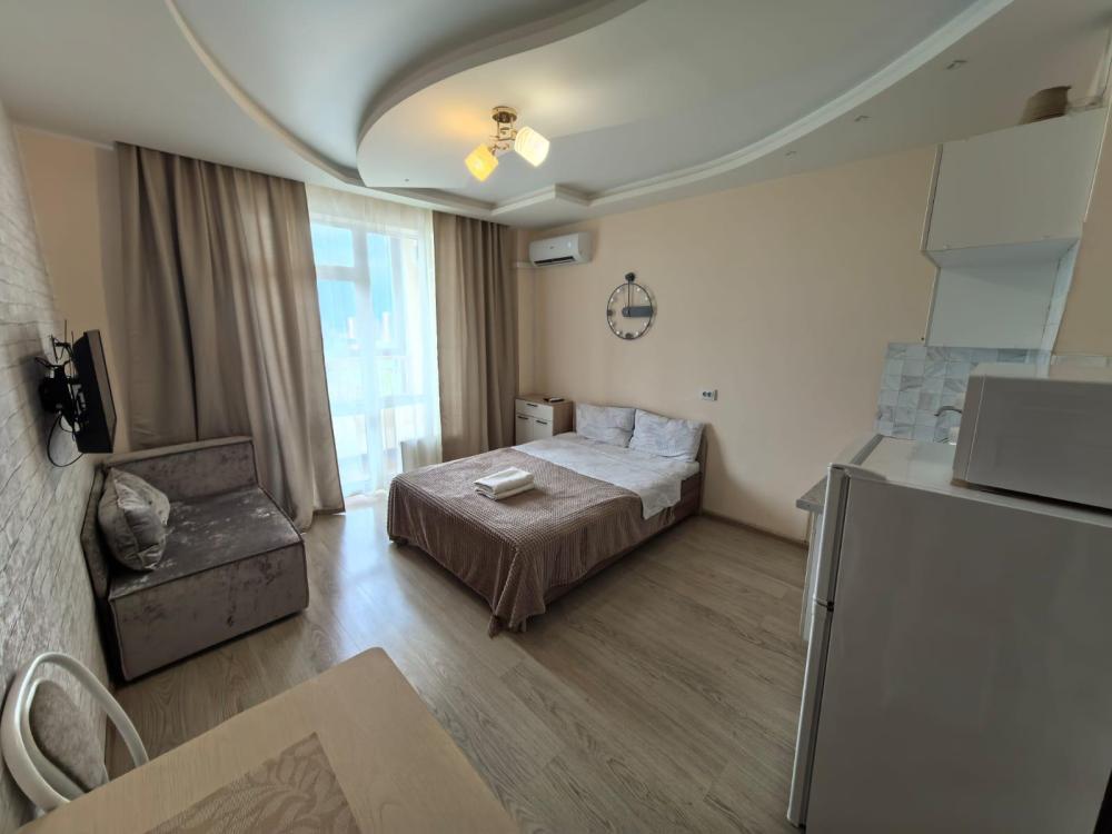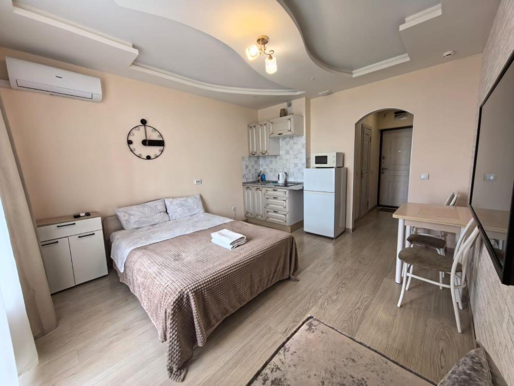 Новая, уютная квартира в центральной части города с интересным дизайном в светлых тонах. В квартире есть все для комфортного проживания: большая двуспальная кровать с удобным, высоким матрасом, ЖК телевизор, смарт тв, кухонная зона с полным комплектом посуды, утюг, гладильная доска, чистое постельное белье из качественного материала, комплекты полотенец для каждого гостя, средства гигиены, тапочки, аптечка, набор иголок и ниток.