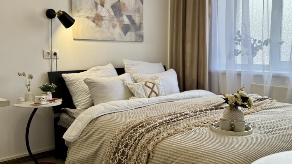 ? Уважаемые гости, рады пригласить вас в видовую квартиру, представленную в стиле итальянской классики, созданную для истинных ценителей утончённого дизайна. Каждая деталь продумана и выполнена на заказ: мебель из натурального дерева из Италии, кафельная плитка — из Испании, обои — от ведущих европейских брендов. Интерьер сочетает в себе элегантность и элементы классической роскоши, создавая атмосферу изящества и гармонии. Из окна открывается вид на озеро. В 10 минутах ходьбы Арена парк со спортивными и игровыми площадками, зонами отдыха, ледовый дворец, река Обь, лес. Основные характеристики квартиры евро-формата: ? Площадь: 84 м² — удобное пространство с новым ремонтом для комфортного отдыха и работы ? Две Комнаты: — просторные и стильные с удобной мебелью ? Спальных мест: 4 (двуспальная кровать с ортопедическим матрасом Орматек и раскладной диван) — идеально подходит для семей или компании ? Этаж: 12 из 15 в здании с отличной инфраструктурой и безопасностью, есть лифт ⏰ Заселение круглосуточно — вы можете заселиться в любое удобное время Удобства: Современный, новый, качественный ремонт. Идеально чистое постельное бельё и полотенца, а также одноразовые тапочки и два халата — для вашего удобства и гигиены. Туалетные принадлежности — шампунь, кондиционер, мыло, гель для душа, набор из зубной щетки и пасты, мицеллярная вода и увлажняющий тоник, ушные палочки и ватные диски. Wi-Fi — быстрый интернет для работы и развлечений Техника: телевизор, стиральная машина, посудомоечная машина, индукционная плита, холодильник, микроволновая печь, духовой шкаф, электрочайник, фен, утюг, электрический камин, увлажнитель воздуха, соковыжималки электрическая и ручная для цитрусовых, электрический тостер, пылесос. А также: - Инфракрасная сауна - Ванна с джакузи - Душевая кабина с шарко - Полы с подогревом Лоджия и комнаты с окнами в пол с видом на озеро и реку. Посуда и кухонные принадлежности: кастрюли, сковородки, тарелки, чашки, бокалы, стаканы, столовые приборы — всё для удобного приготовления пищи и комфортного приема пищи Расположение: ?Квартира расположена в пешей доступности от парка Арена и реки Обь также рядом находится ледовый дворец спорта, в котором проводятся различные мероприятия — идеальное место для тех, кто хочет быть в центре событий. Для зимнего времени - в шаговой доступности горнолыжный спуск. В доме несколько супермаркетов, банкоматы, салоны красоты, фитнес центры, кофейни, пиццерии, аптека. От метро Студенческая 15 минут ходьбы. Примечание: перед бронированием, ознакомьтесь с правилами: Заключается договор. Паспорт обязателен. 1. Мы сдаем квартиру в аренду гостям старше 18 лет Мы не являемся чьими-либо посредниками, у нас нет скрытых платежей, вы не платите комиссию. Мы работаем с юридическими лицами, предоставляем отчетные документы по запросу. Оплата безналичная. Стоимость аренды зависит от сезона, дня недели, количества дней проживания. Мы очень тщательно подходим к соблюдению чистоты и к комфорту наших гостей, вы будете себя чувствовать в нашей квартире как дома Забронируйте квартиру прямо сейчас Обращаем внимание, что перед заселением каждый Гость проходит электронно верификацию по паспорту с помощью сервиса заселения, также мы с вами подписываем электронный договор. Приложение Apart Sharing - бесконтактное заселение. Где у Ва