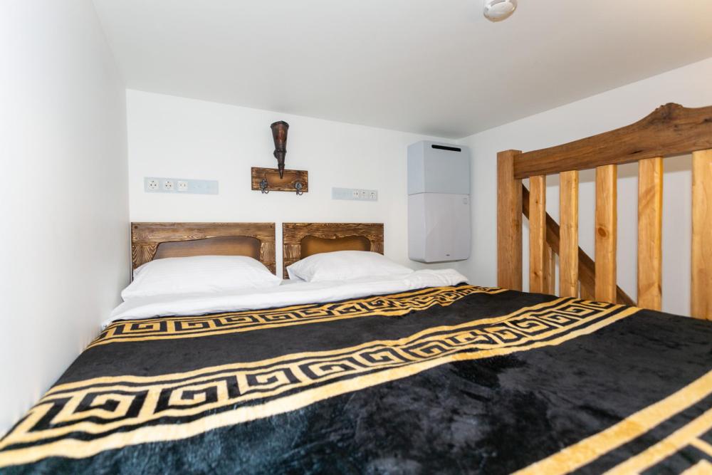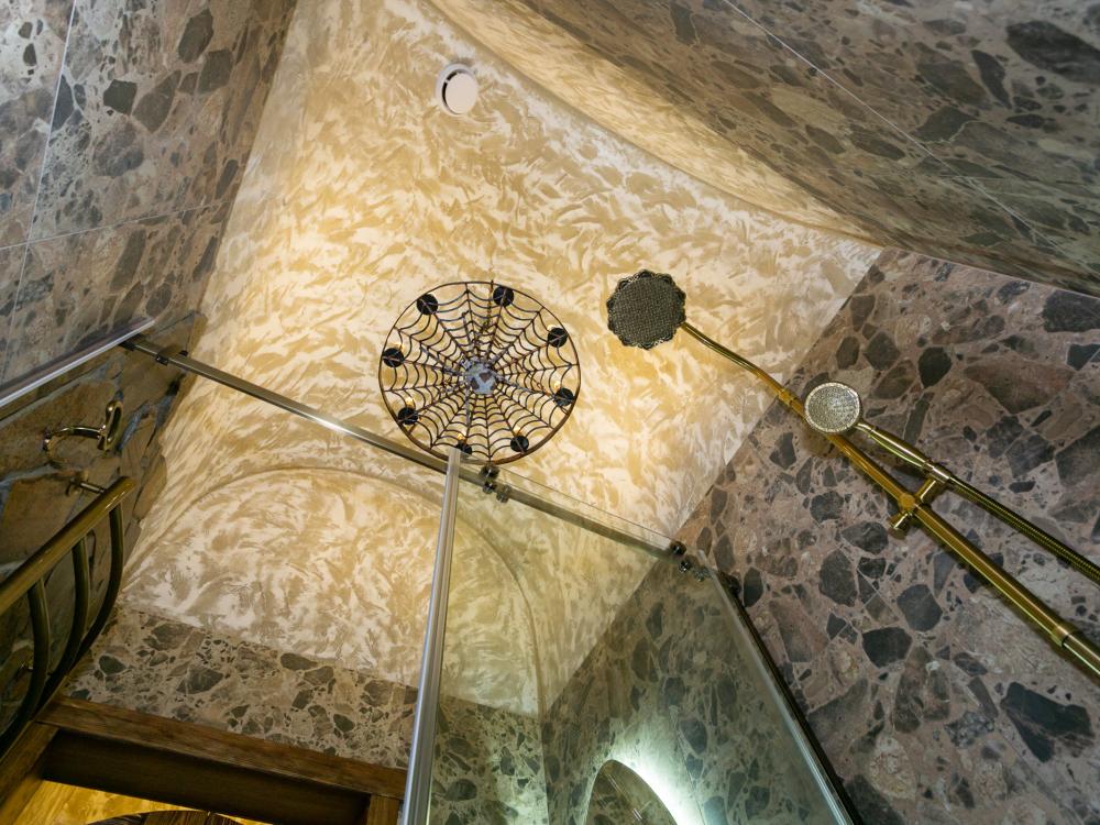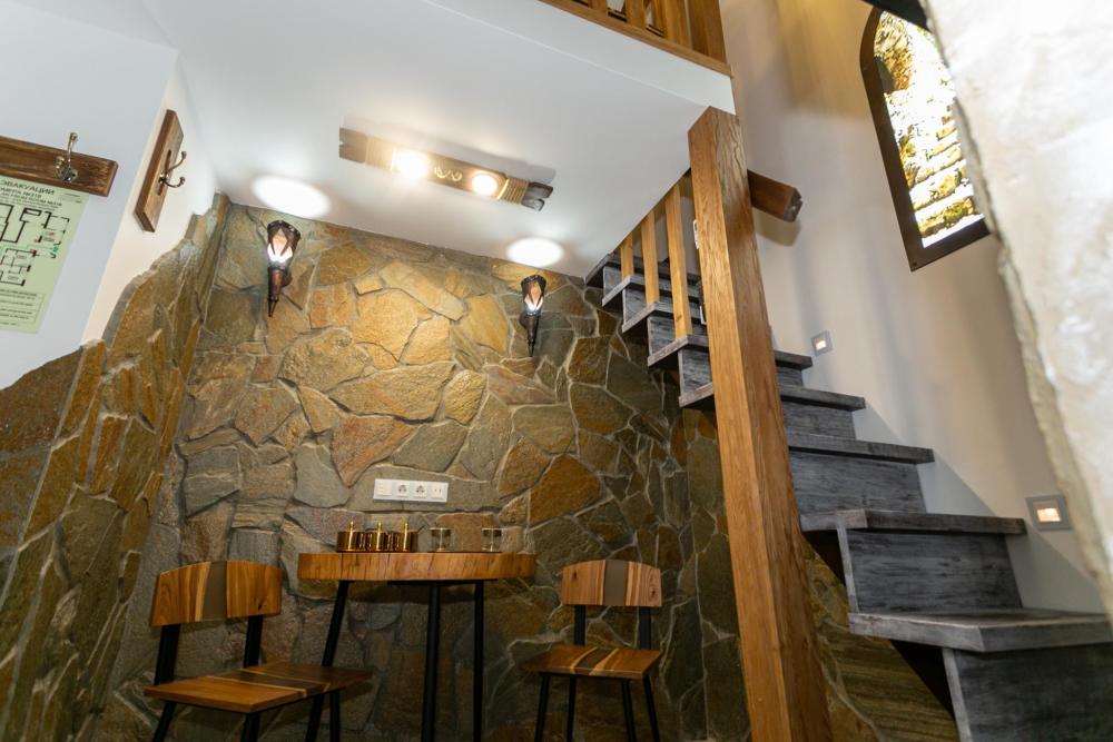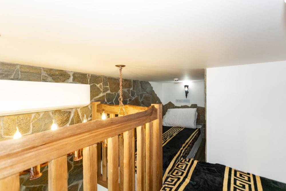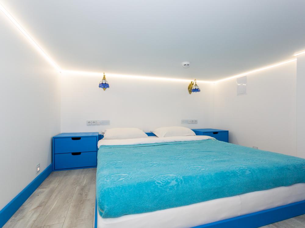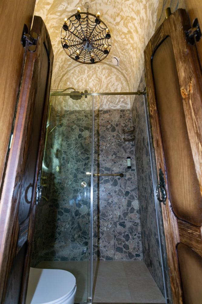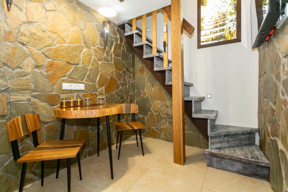Двухуровневый номер оборудован комфортной мебелью, антикварными деталями и современными удобствами: кондиционер, телевизор, Wi-Fi, кухонная зона, стиральная машина, ванная комната.