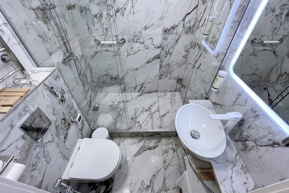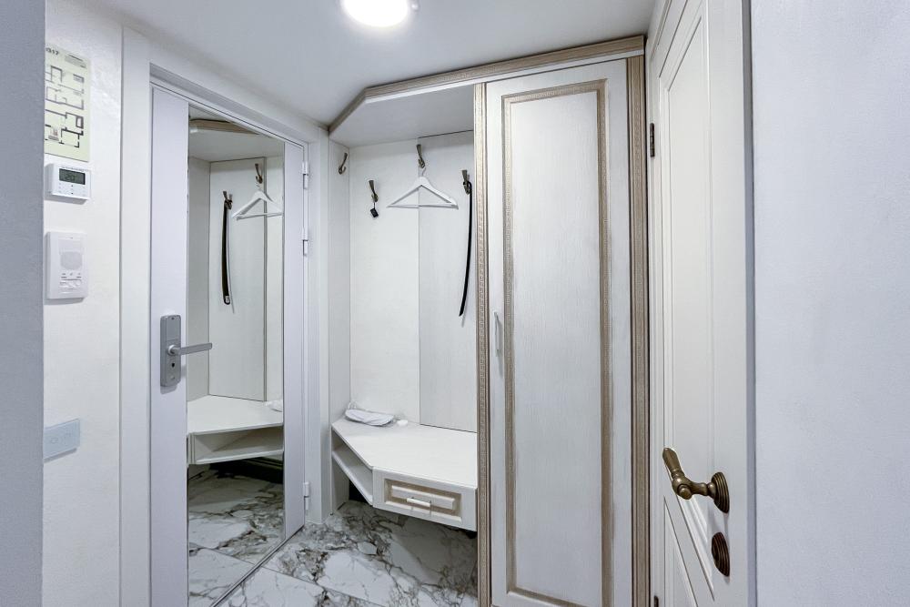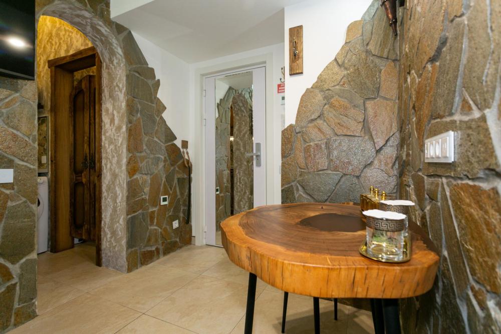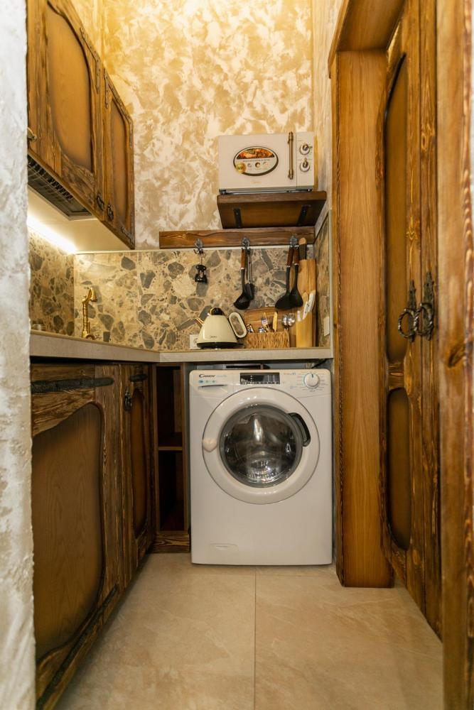 Номер оборудован комфортной мебелью, антикварными деталями и современными удобствами: кондиционер, телевизор, Wi-Fi, кухонная зона, стиральная машина, ванная комната.