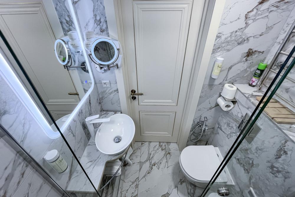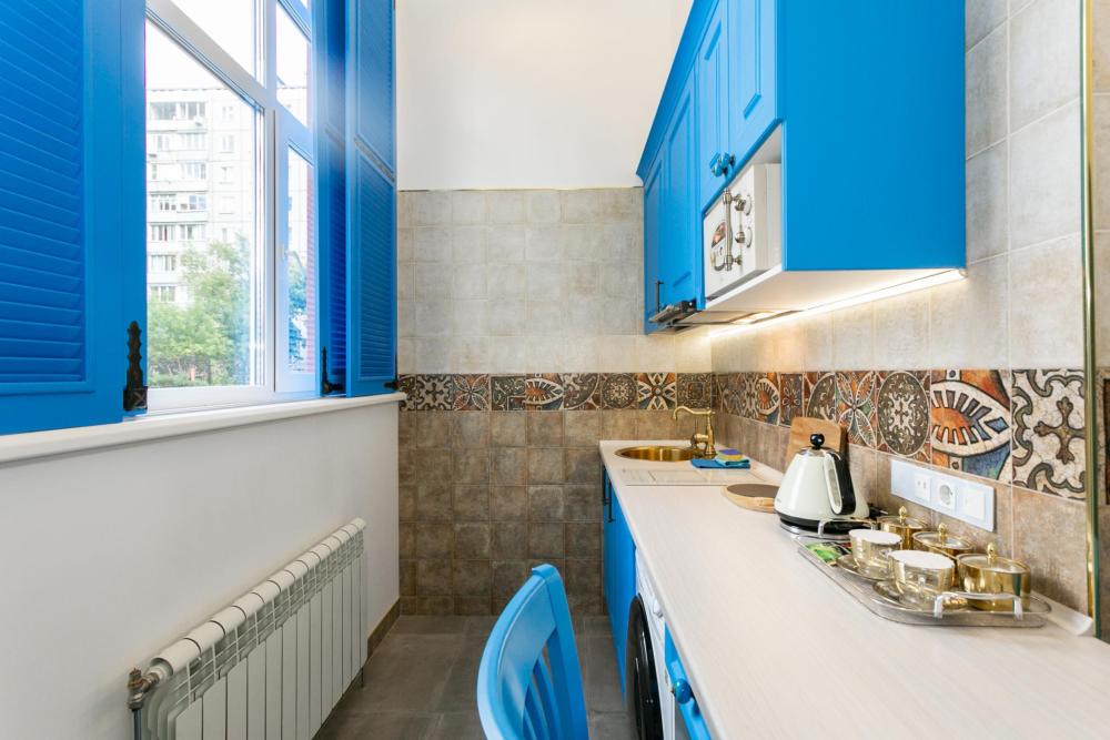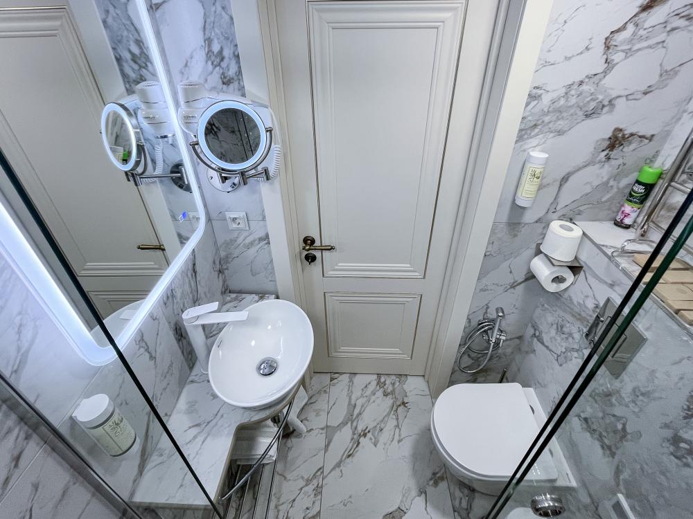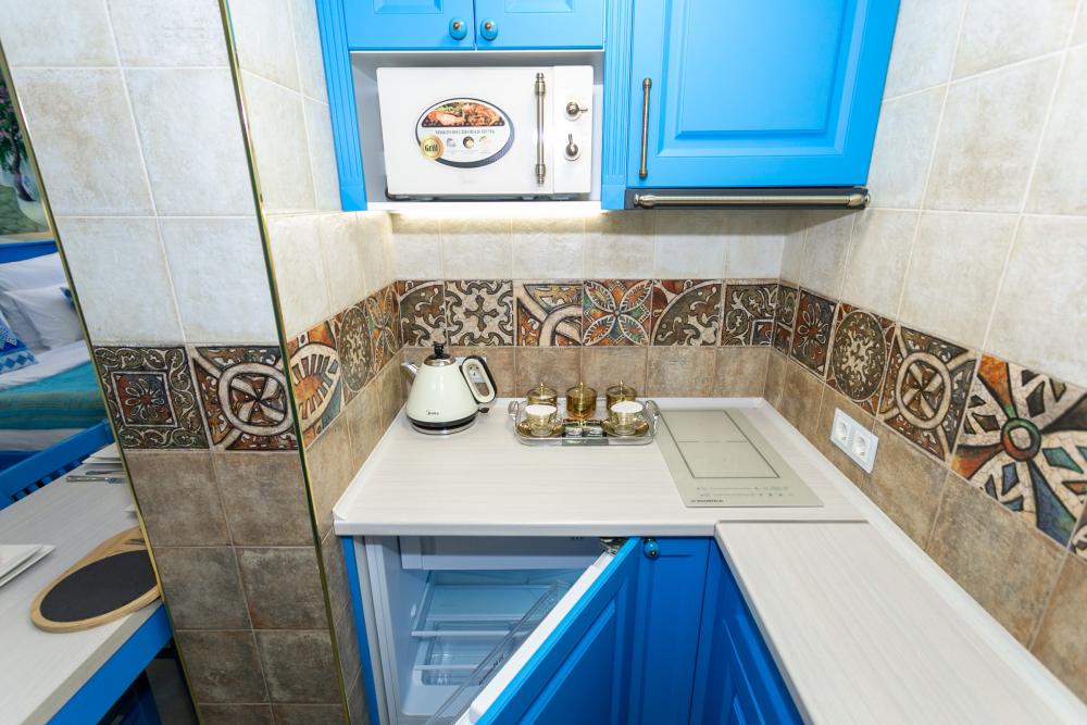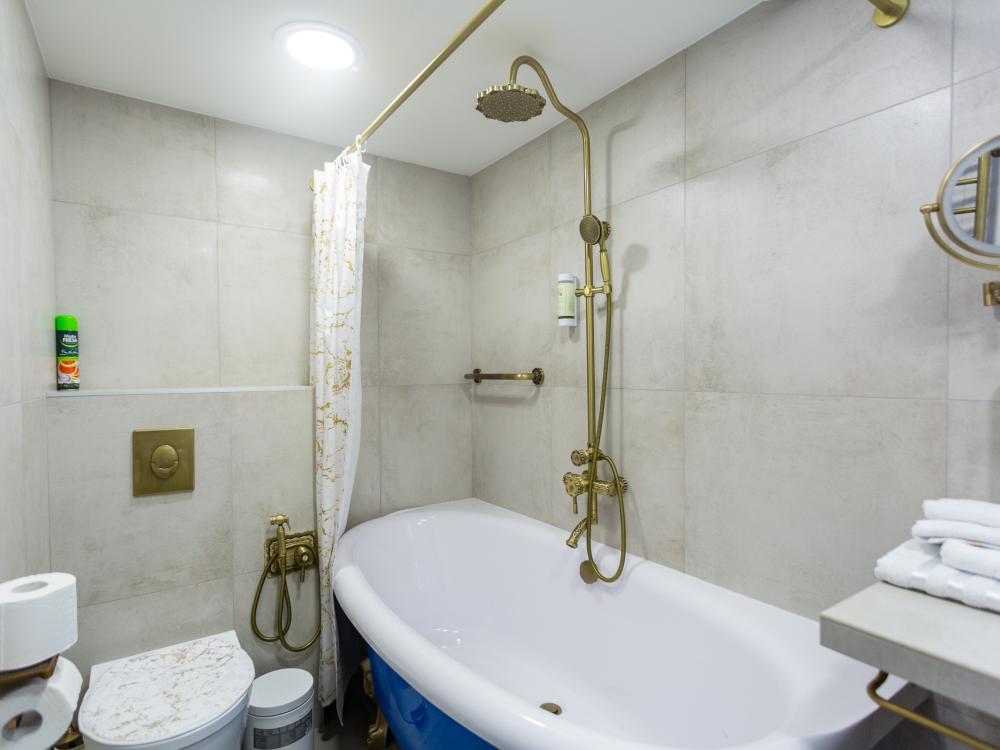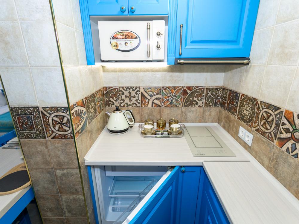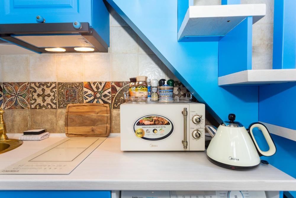 Номер оборудован комфортной мебелью, антикварными деталями и современными удобствами: кондиционер, телевизор, Wi-Fi,кухонная зона, стиральная машина, ванная комната.