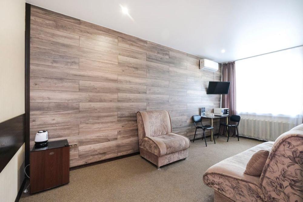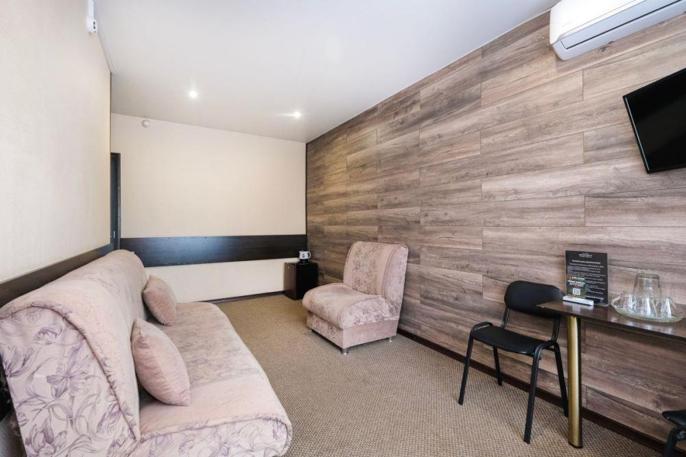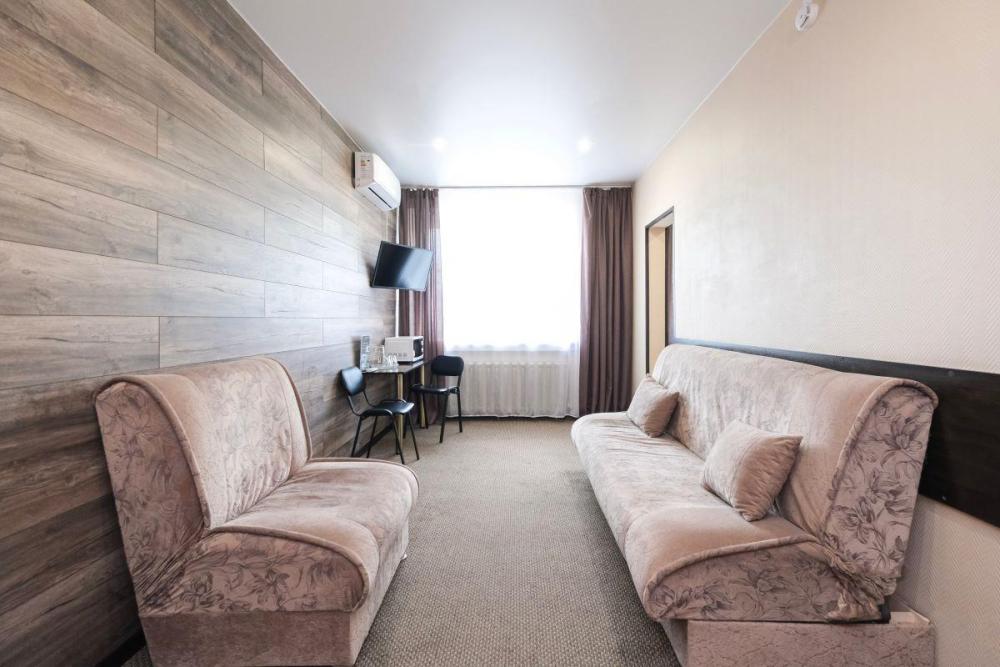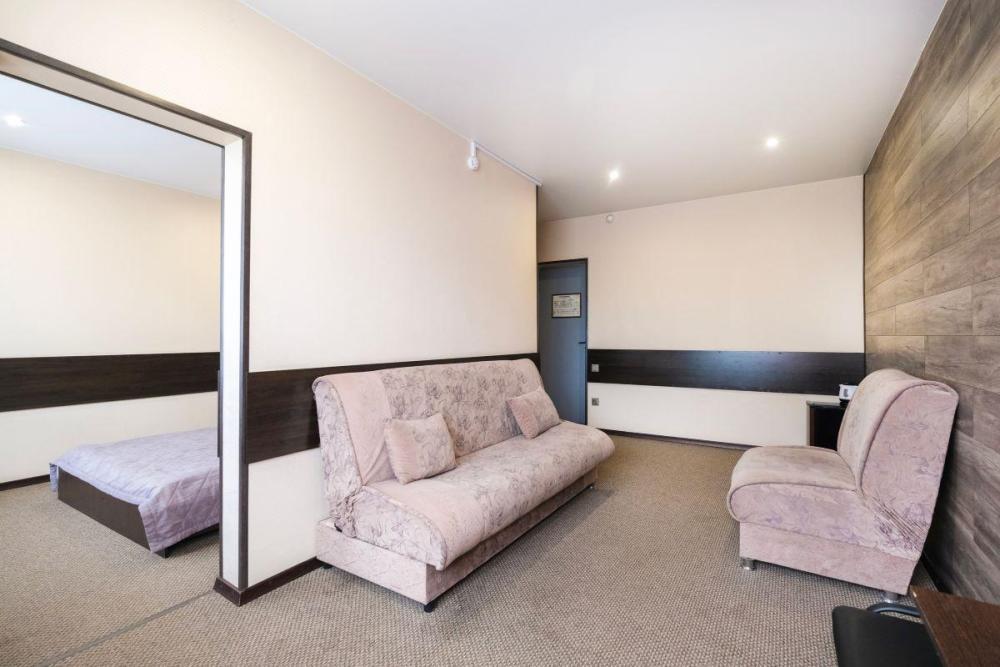 Двухкомнатный номер представляет собой спальную комнату и гостиную с рабочим местом. В номере: Две кровати (90х200); Ортопедический матрац; Одеяла, с наполнителем из овечьей шерсти; Телевизор; Телефон; Холодильник; Ванная комната; Рабочий стол.
