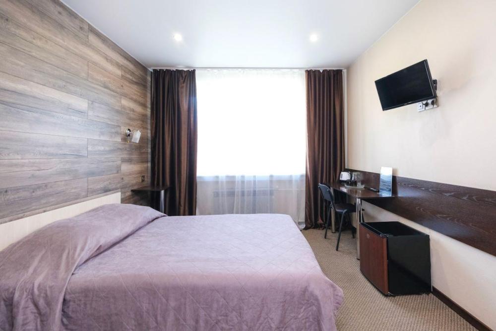 Однокомнатный стандартный номер с одной двуспальной кроватью (160*200) и рабочим местом. В номере: Двуспальная кровать, Кондиционер, Ортопедический матрац, Одеяла с наполнителем из овечьей шерсти, Телевизор, Холодильник, Чайник, Ванная комната, Рабочий стол.