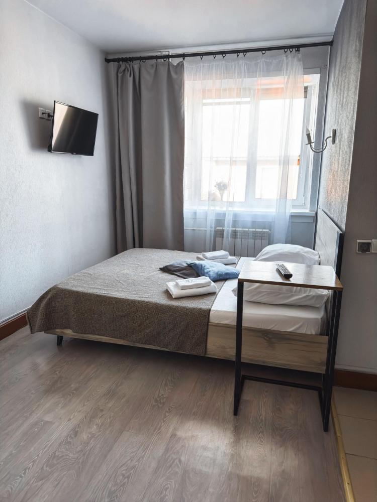 Стандартный номер в стиле "лофт" с кроватью и санузлом. Есть всё, что необходимо для вашего отдыха: двухместная кровать, душ, телевизор, шкаф для одежды, стол для работы. Идеальная комната по соотношению цена/качество. Бесплатный Wi-Fi; Уборка номера; Парковка; Некурящий номер; Телевизор; Санузел; Шкаф.