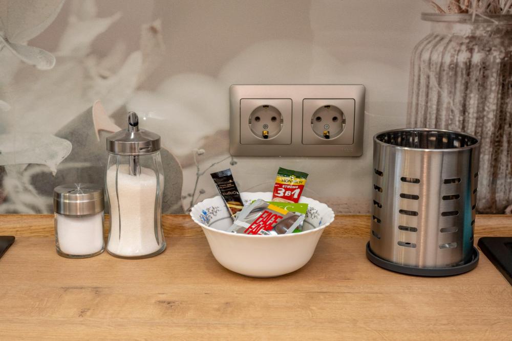 Уютная квартира - студия. Белое постельное бельё, кухонная зона со всем необходимым. Предоставляем моющие средства для личной гигиены: зубной набор, шампунь, кондиционер для волос, жидкое мыло, шапочка для душа, тапочки, средство для стирки. В квартире есть: телевизор с функцией Smart TV, кондиционер, микроволновка, варочная поверхность, холодильник, чайник, фильтр для воды, фен, полотенца, посуда для приготовления и для сервировки стола, утюг и гладильная доска. Wi-Fi включен в стоимость.